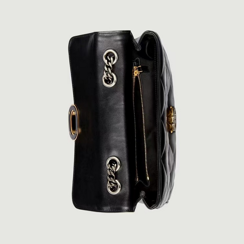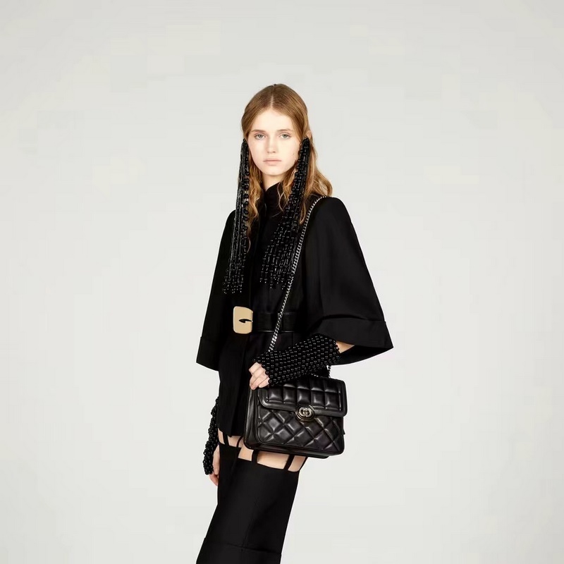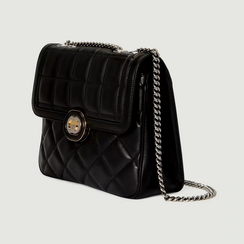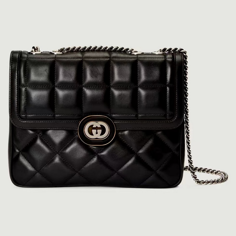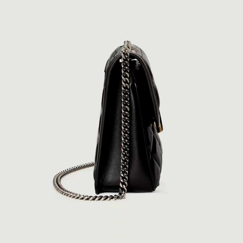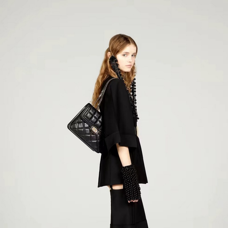 구찌는 클래식한 실루엣과 정교한 원단에 새로운 접근 방식을 도입하여 새로운 생명을 불어넣고 지난 수십 년 동안의 사랑에 보답하고 있습니다. 이 새로운 숄더백은 브랜드의 아카이브 디자인에서 상징적인 상징을 영리하게 통합한 퀼팅 디자인을 특징으로 합니다. 플랩 클로저의 인터로킹 더블 G 하드웨어 1970년대 스타일의 가죽 파이핑 그리고 강한 복고풍 분위기를 자아내는 체인 숄더 스트랩이 그 예입니다. 세부 정보 숨기기 검은색 퀼팅 가죽 금색 하드웨어 가죽 안감 이중 G 디테일 연동 내부: 지퍼형 포켓 1개 슬라이딩 체인 어깨끈은 어깨끈 높이 47.5cm 또는 상단 손잡이 높이 26cm로 조절할 수 있습니다. 무게: 약 0.9kg 중간 크기: 25cm(가로) x 19.5cm(세로) x 8cm(깊이)