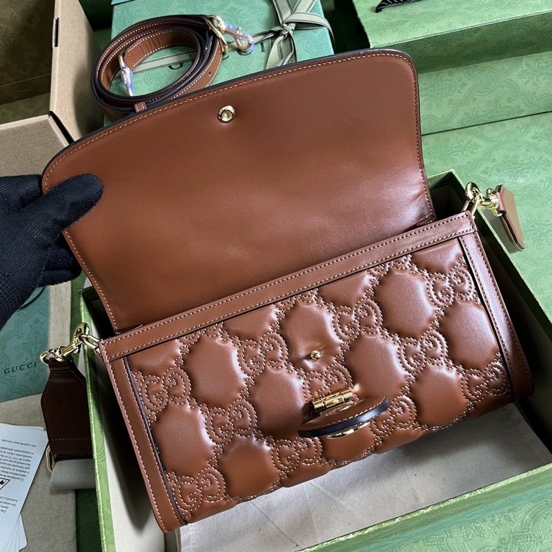 GG 마테라세 가죽 소형 숄더백. GG 마테라세 가죽은 매 시즌 브랜드의