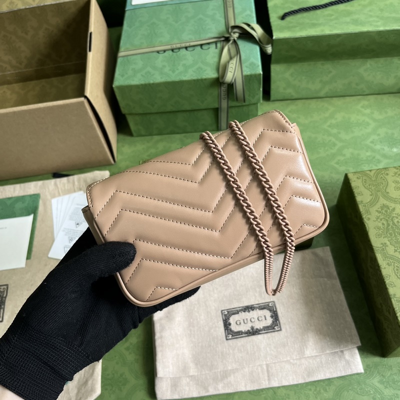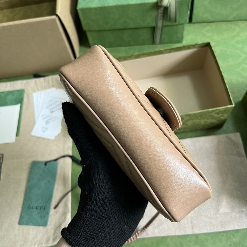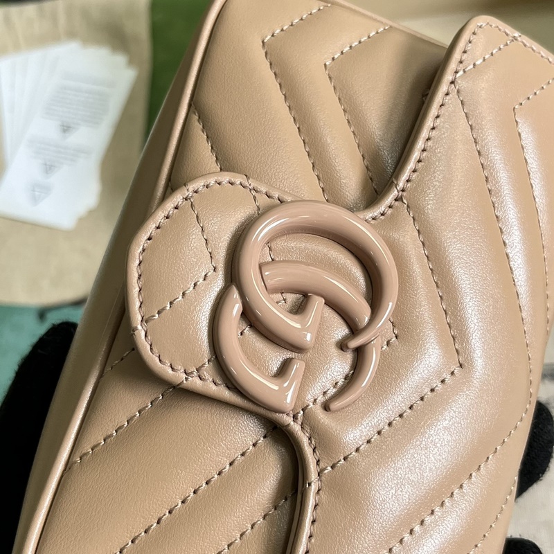 GG Marmont 울트라 미니 핸드백. 구찌의 클래식한 소형 액세서리는 브랜드의 진화하는 미학에 새로운 생명을 불어넣고 있습니다. 2023 봄/여름 컬렉션의 하이라이트인 가죽 제품 컬렉션은 장미 베이지 색상으로 전문적으로 제작되었으며 섬세하고 우아한 색조로 새로운 시즌의 도래를 알립니다. 이 GG Marmont 울트라 미니 핸드백은 같은 색조의 액세서리를 보완하는 눈부신 방식으로 전문적으로 제작되었습니다. 베이지색 V 퀼팅 가죽 베이지색 세라믹 효과 마감의 황동 하드웨어 마이크로파이버 안감 키링 별도로 가방에 부착 가능 더블 G 체인 숄더 스트랩(길이 60cm) 최대 휴대폰 크기: 147mm(길이) x 69mm(너비) x 7mm(두께). 이 아이템은 구찌 카드 홀더를 넣을 수 있으며 무게: 약 0.35kg. 모델: 476433. 크기: 16.5(가로) x 10(세로) x 4.5(깊이)cm 색상: 로즈 베이지/G 오리지널 가죽.