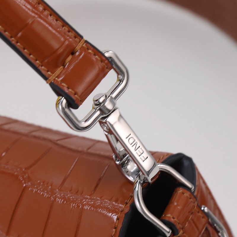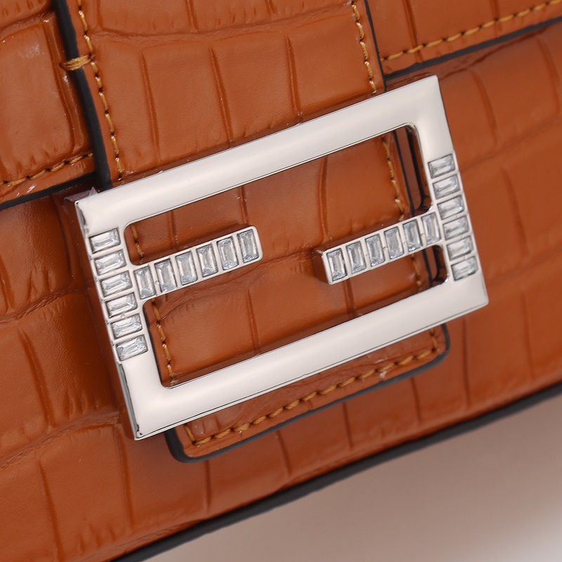 펜디와 티파니 앤 컴퍼니가 힘을 합쳐 독점적이고 상징적인 미디엄 사이즈 리에디션 바게트 핸드백을 만들었습니다. 이 가방은 클래식한 티파니의 부드러운 가죽으로 만들어졌습니다. FF 버클은 스털링 실버로 도금되어 있으며 더블 T 로고의 티파니 블루 에나멜 디테일로 장식되어 있습니다. 이 가방은 자석 스냅 잠금 장치가 달린 앞쪽 플랩과 평평한 주머니가 달린 톤이 같은 실크 새틴 안감이 특징입니다. 이 가방은 탈부착이 가능한 손잡이와 어깨끈이 있어 손으로 들거나 어깨에 메거나 몸에 걸칠 수 있습니다. 이 가방에는 티파니로 돌아가다 실린더 모양의 참과 스털링 실버로 만든 티파니 바게트 각인 태그가 장식되어 있습니다! 아이템 번호: 6753# 악어/캐러멜 크기: 26×5×15CM