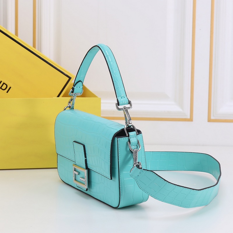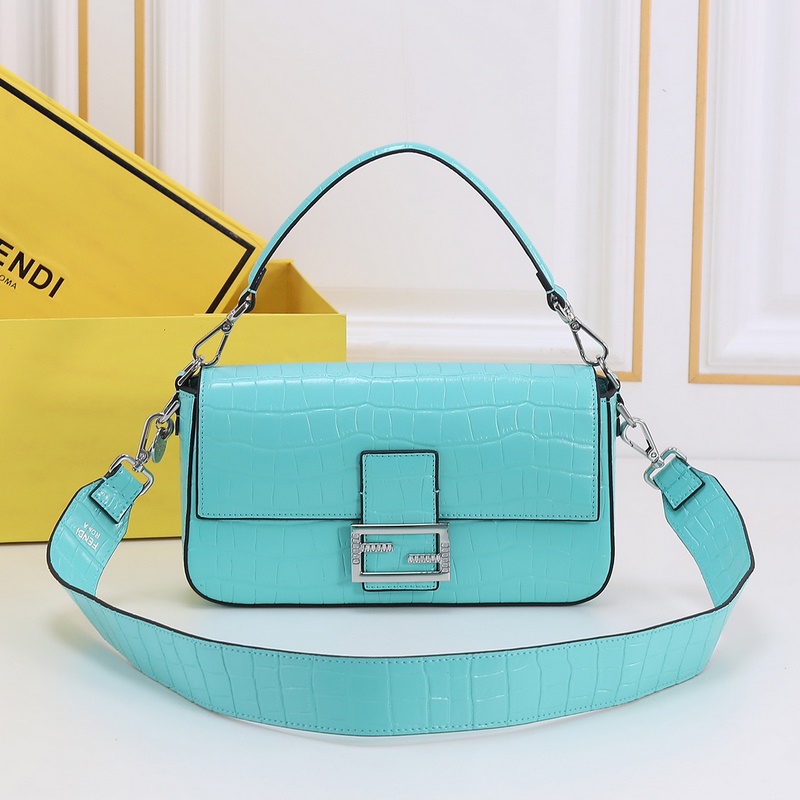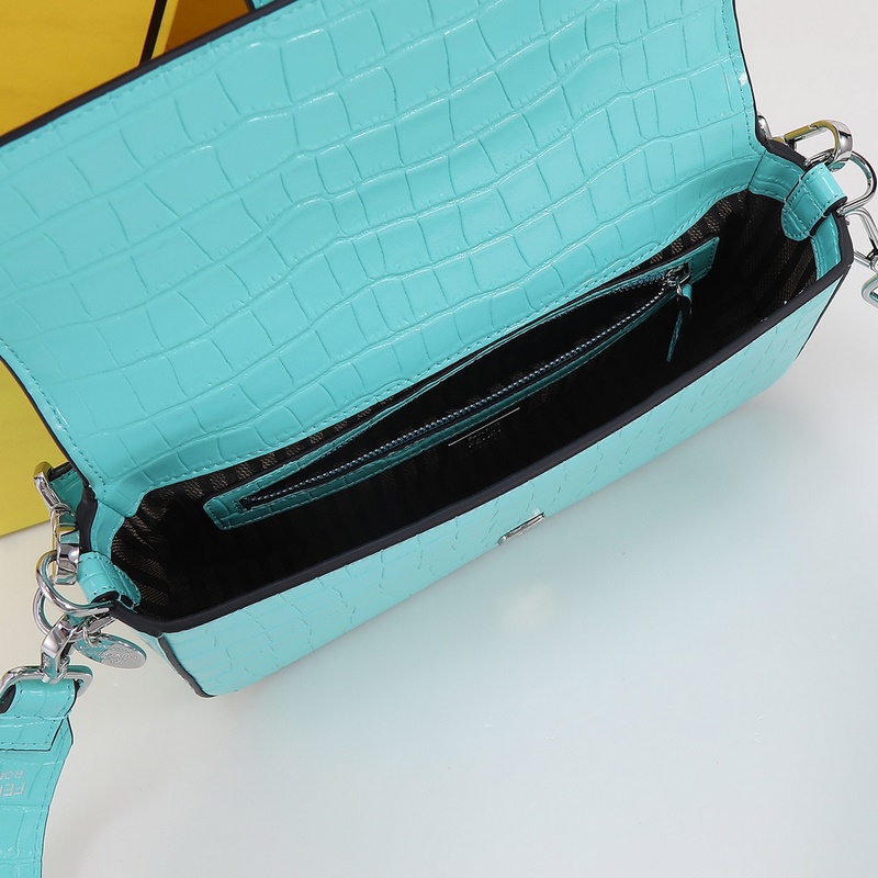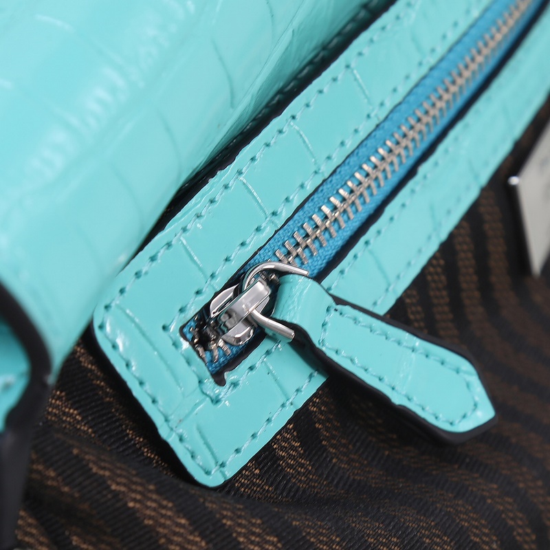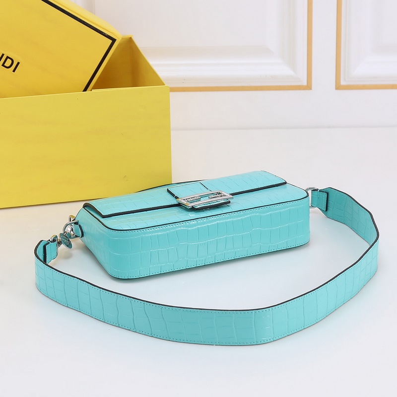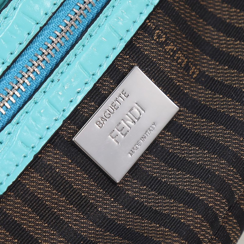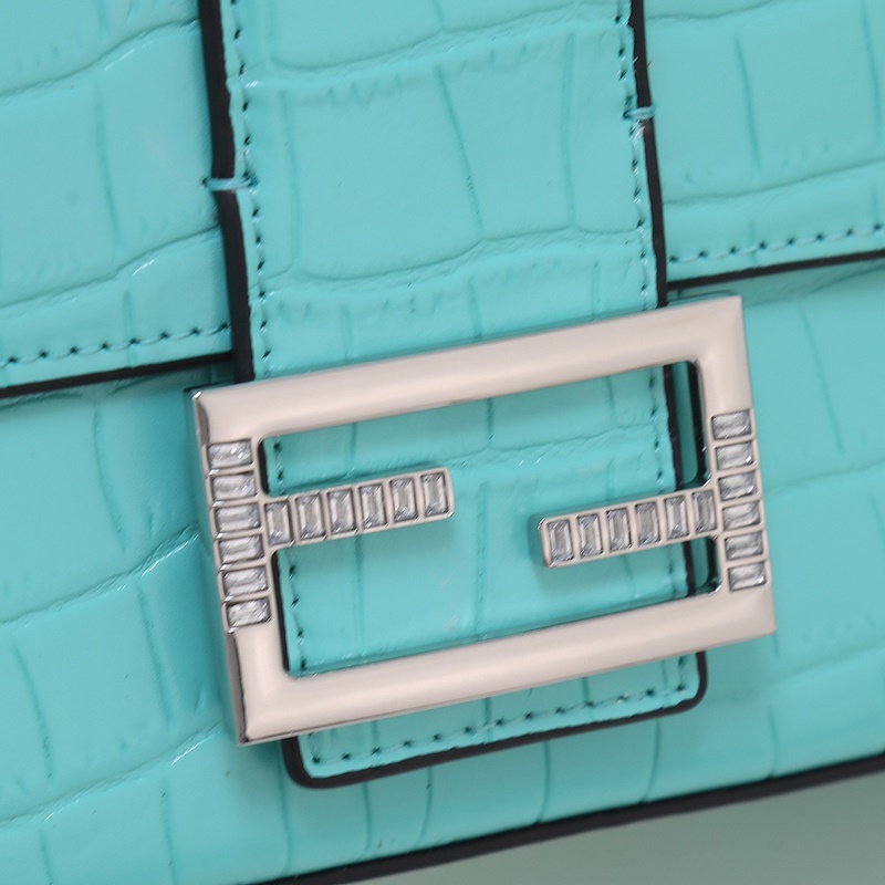 펜디와 티파니 앤 컴퍼니가 힘을 합쳐 독점적이고 상징적인 미디엄 사이즈 리에디션 바게트 핸드백을 만들었습니다. 이 가방은 클래식한 티파니의 부드러운 가죽으로 만들어졌습니다. FF 버클은 스털링 실버로 도금되어 있으며 더블 T 로고의 티파니 블루 에나멜 디테일로 장식되어 있습니다. 이 가방은 자석 스냅 잠금 장치가 달린 앞쪽 플랩과 평평한 주머니가 달린 톤이 같은 실크 새틴 안감이 특징입니다. 이 가방은 탈부착이 가능한 손잡이와 어깨끈이 있어 손으로 들거나 어깨에 메거나 몸에 걸칠 수 있습니다. 이 가방에는 티파니로 돌아가다 실린더 모양의 참과 스털링 실버로 만든 티파니 바게트 각인 태그가 장식되어 있습니다! 품번: 6753# 악어/파랑 크기: 26×5×15CM