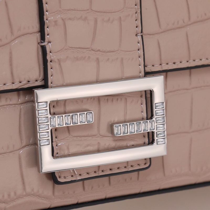 펜디와 티파니 앤 컴퍼니가 힘을 합쳐 독점적이고 상징적인 미디엄 사이즈 리에디션 바게트 핸드백을 만들었습니다. 이 가방은 클래식한 티파니의 부드러운 가죽으로 만들어졌습니다. FF 버클은 스털링 실버로 도금되어 있으며 더블 T 로고의 티파니 블루 에나멜 디테일로 장식되어 있습니다. 이 가방은 자석 스냅 잠금 장치가 달린 앞쪽 플랩과 평평한 주머니가 달린 톤이 같은 실크 새틴 안감이 특징입니다. 이 가방은 손잡이와 어깨끈이 달려 있어 손으로 들거나 어깨에 메거나 몸에 걸칠 수 있습니다. 이 가방에는 티파니로 돌아가다 실린더 모양의 참과 스털링 실버로 만든 티파니 바게트 각인 태그가 달려 있습니다! 품번: 6753# 크로커다일/그레이 크기: 26×5×15CM