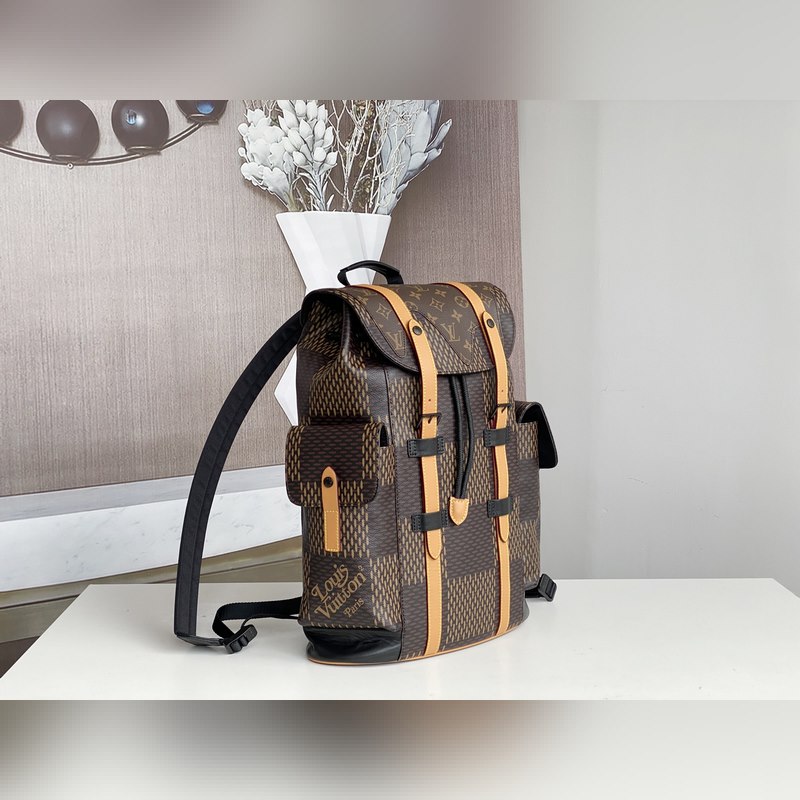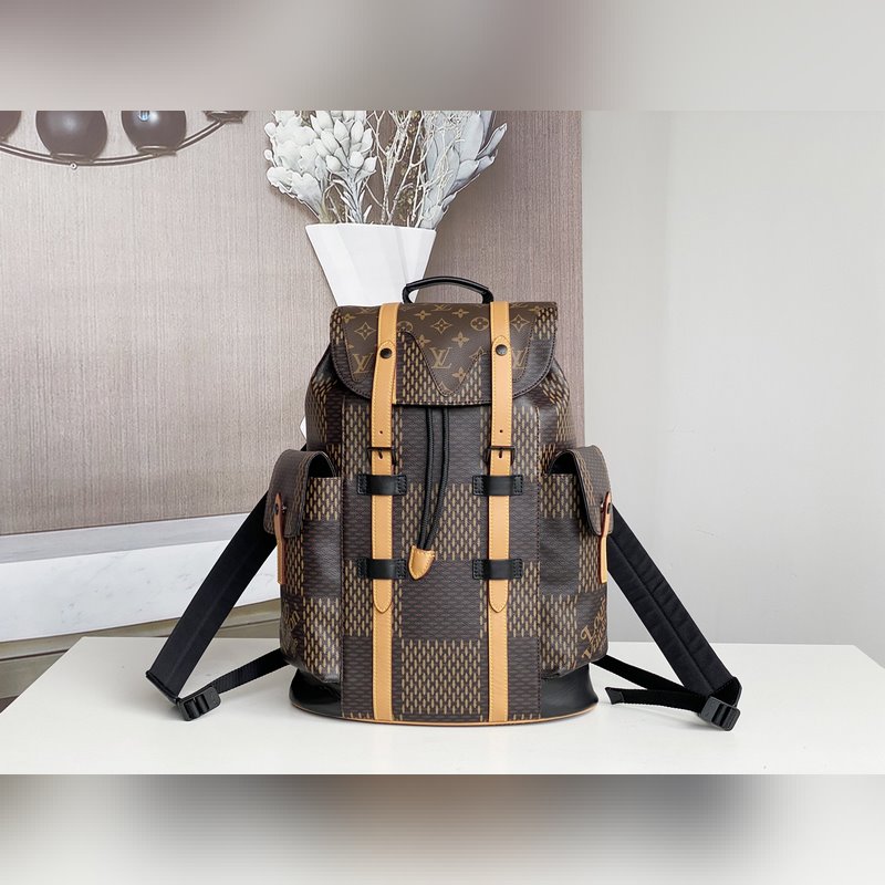 LV 모델 N40358 크리스토퍼 소형 배낭 버질 아블로와 일본 디자이너 니고가 전통적인 코드를 21세기 도쿄의 스트리트 스타일로 해석한 크리스토퍼 스몰 백팩을 만들었습니다. 자이언트 다미에 에벤느 코팅 캔버스는 견고한 느낌을 주며 상단 플랩의 모노그램 캔버스에는 니고의 상징적인 물결 무늬가 현대적인 느낌을 더해줍니다. 크기: 41.0 x 48.0 x 13.0 cm