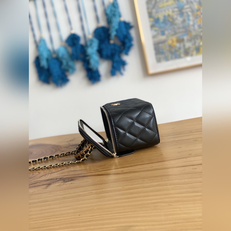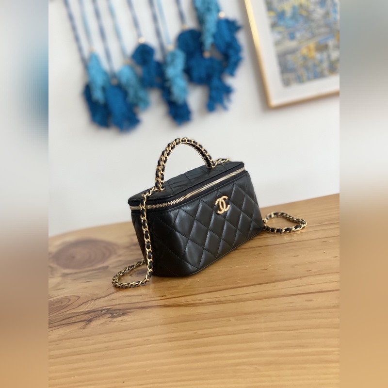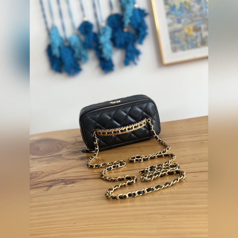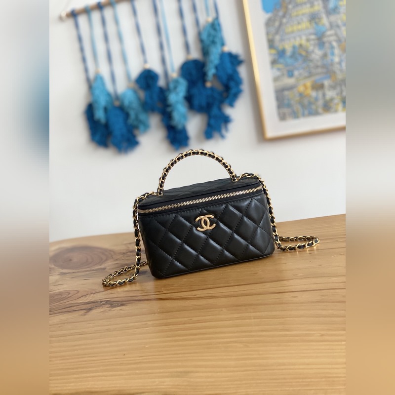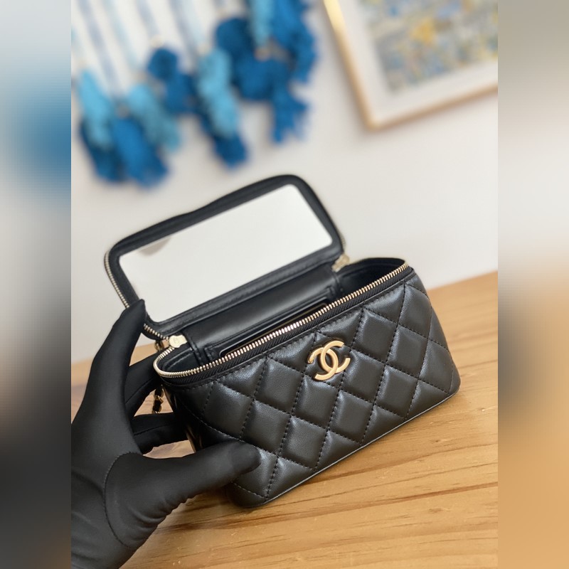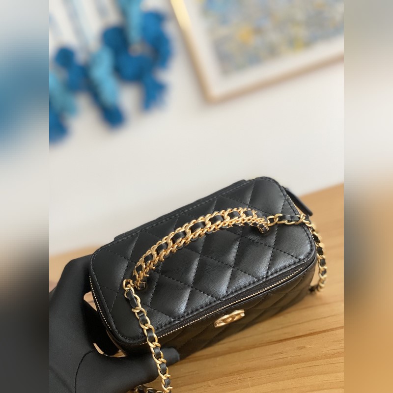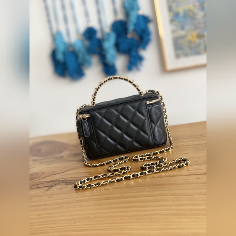 2023Chanel 2023p 새로운 상자 가죽 상자 블랙과 골드 리치