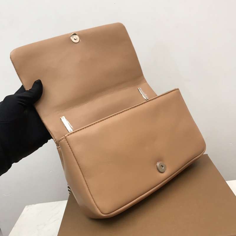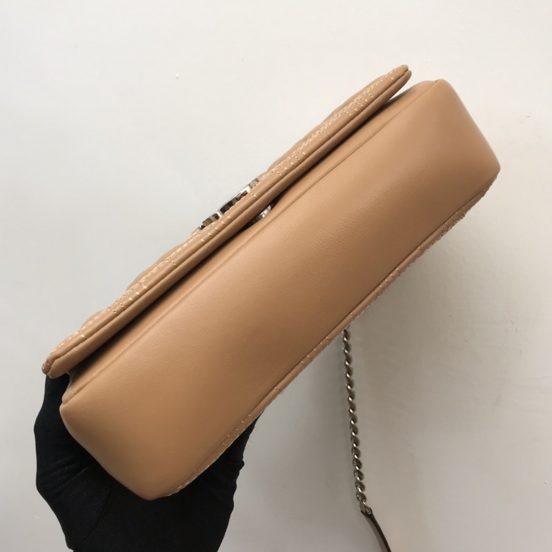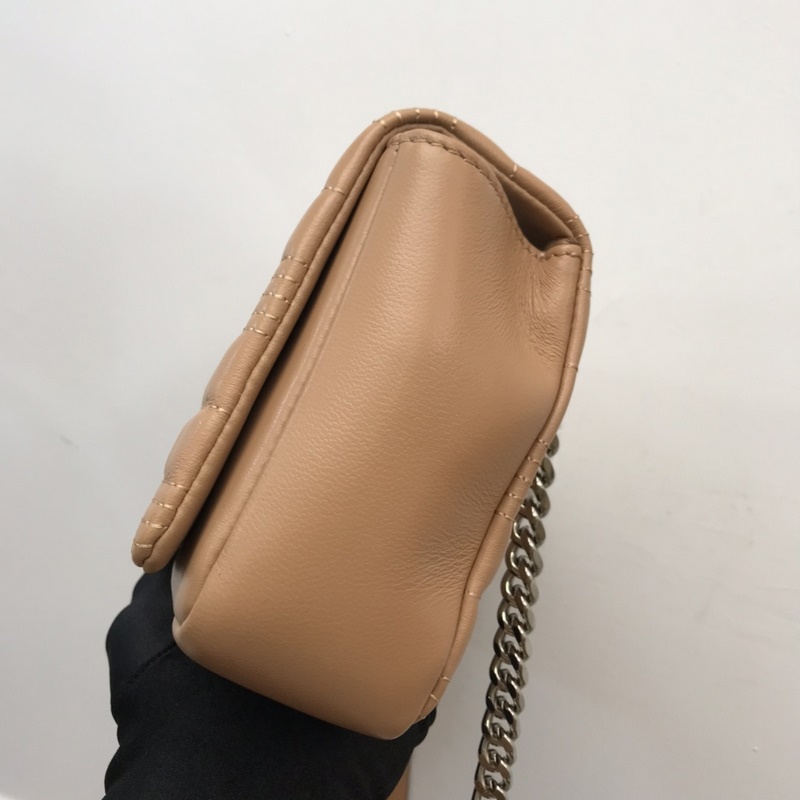 (2023600) 크기: W23 x H13 x D6cm 어깨끈의 최단 수직 착용 길이: 27cm 어깨끈의 최대 세로 길이: 50cm 외피: 100% 양가죽 장식: 100% 양가죽 안감: 면 60% 폴리에스터 40% 체인 조절식 양가죽 어깨 스트랩 내부 포켓 1개 상단 덮개에 자석 스냅 잠금장치 손으로 그린 가장자리 반짝이는 금속 부속품 이탈리아산