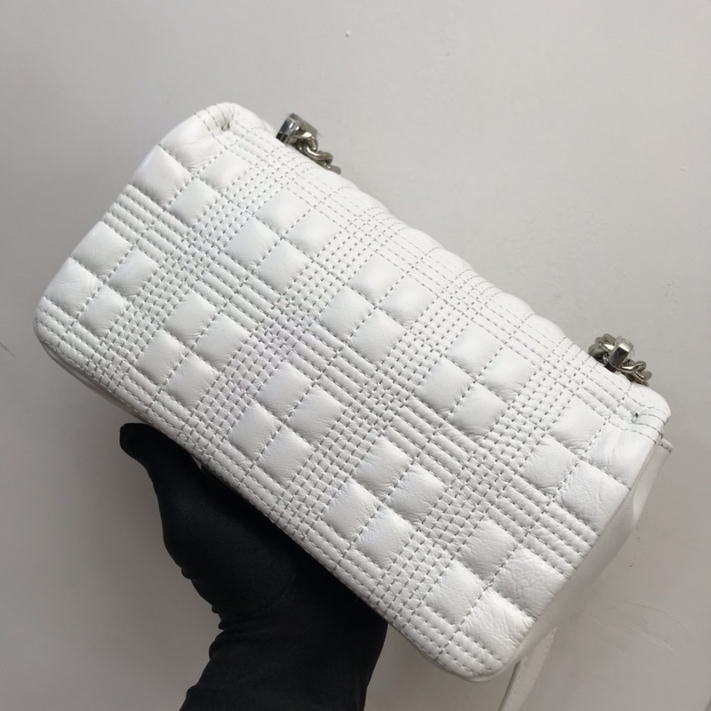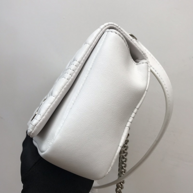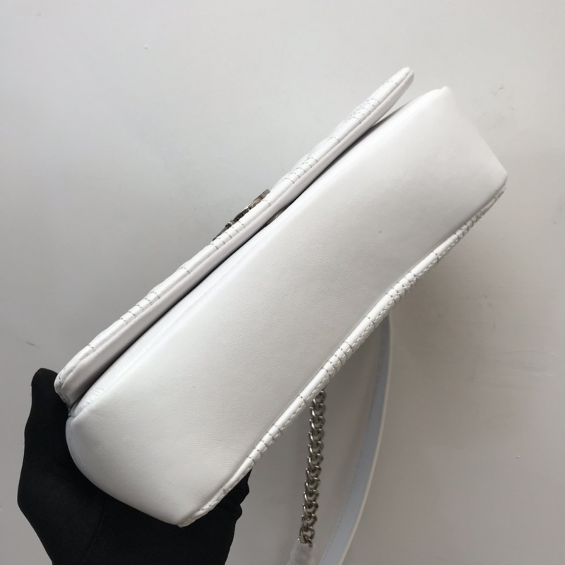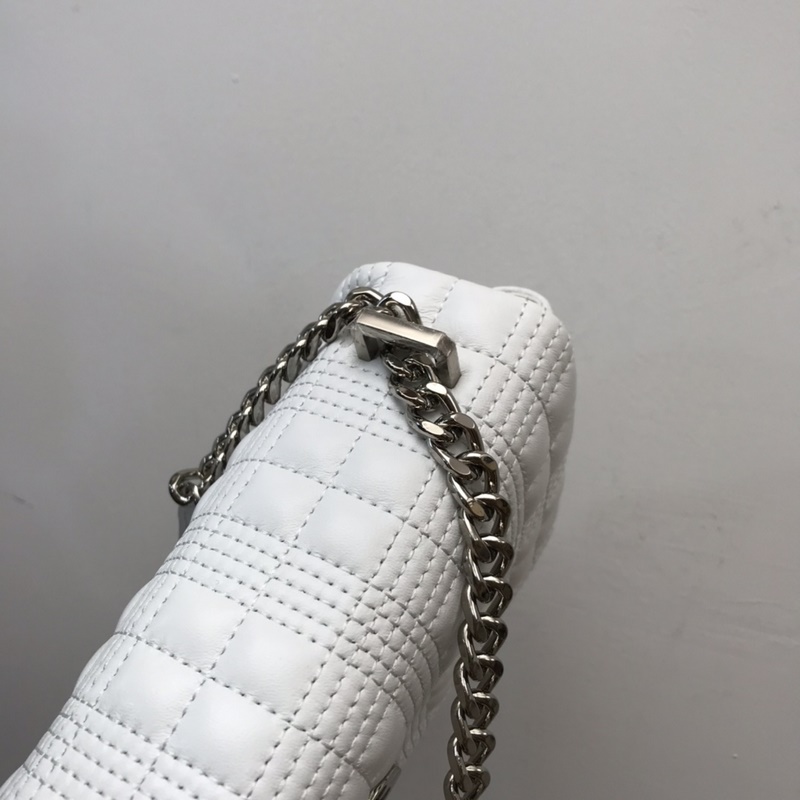 (2023600) 크기: W23 x H13 x D6cm 어깨끈의 최단 수직 착용 길이: 27cm 어깨끈의 최대 세로 길이: 50cm 외피: 100% 양가죽 장식: 100% 양가죽 안감: 면 60% 폴리에스터 40% 체인 조절식 양가죽 어깨 스트랩 내부 포켓 1개 상단 덮개에 자석 스냅 잠금장치 손으로 그린 가장자리 반짝이는 금속 부속품 이탈리아산