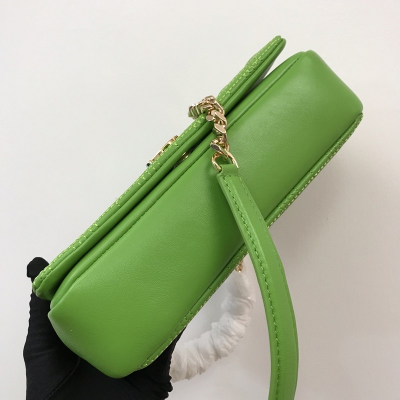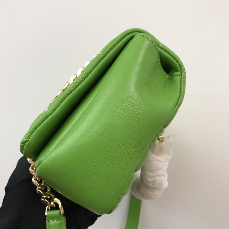 (2023600) 크기: W23 x H13 x D6cm 어깨끈의 최단 수직 착용 길이: 27cm 어깨끈의 최대 수직 길이: 50cm 외피: 100% 양가죽 장식: 100% 양가죽 안감: 면 60% 폴리에스터 40% 체인 조절식 양가죽 어깨 스트랩 내부 포켓 1개 상단 덮개에 자석 스냅 잠금장치 손으로 그린 가장자리 반짝이는 금속 부속품 이탈리아산