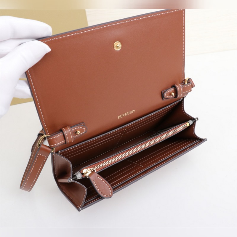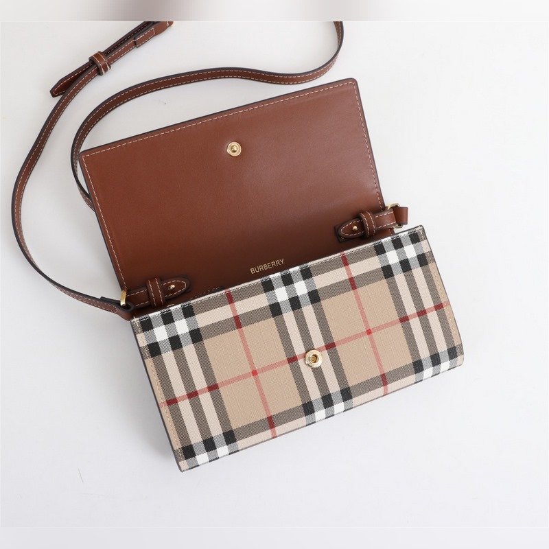 B 홈 플레이드 가죽 지갑에 체인 장식 가죽 숄더 스트랩이 부착되어 있습
