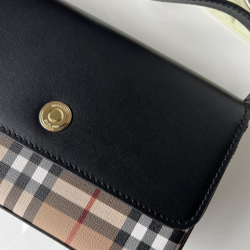 최고급 오리지널 B 브랜드의 새로운 빈티지 체크 무늬 가죽 페니 숄더백 듀얼 사용 핸드백 부드러운 수입 송아지 가죽과 체크 무늬 패브릭으로 제작 금색 하드웨어 고품질 및 정교한 제작 실제 제품 사진 모델 6603 블랙 크기 20cm*13.5cm*5cm