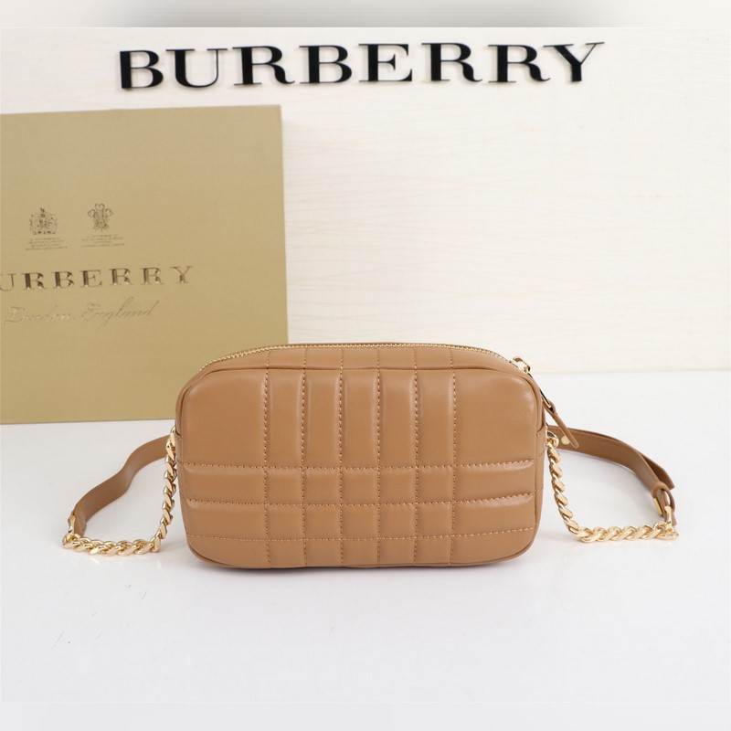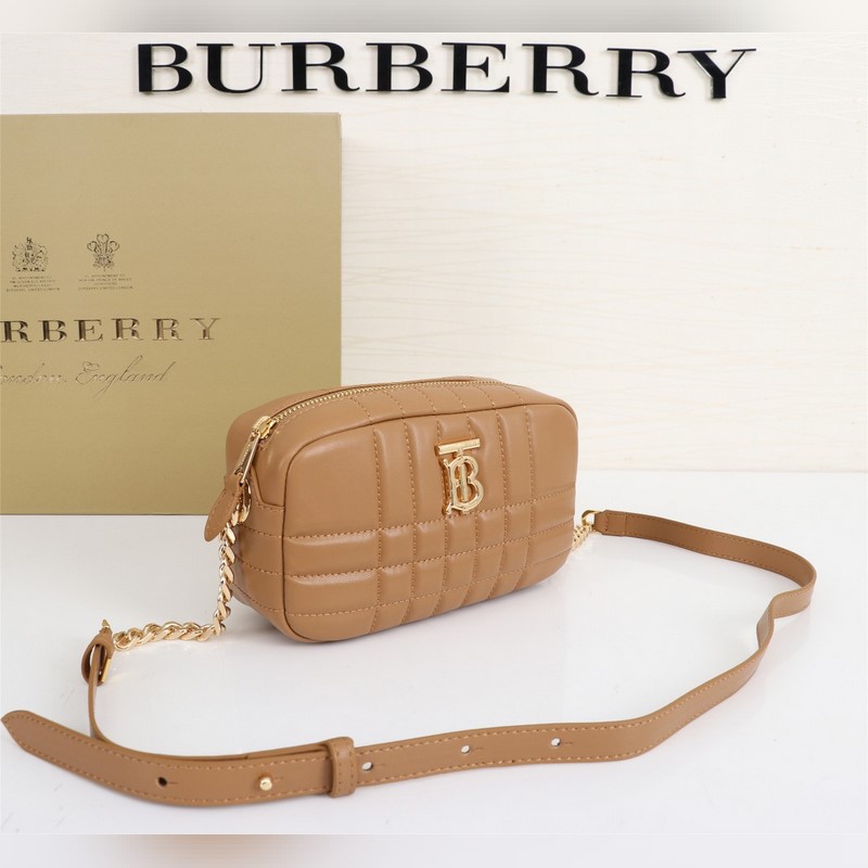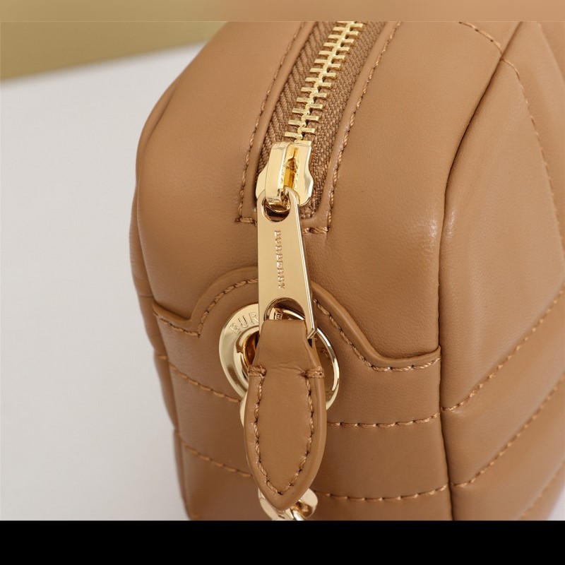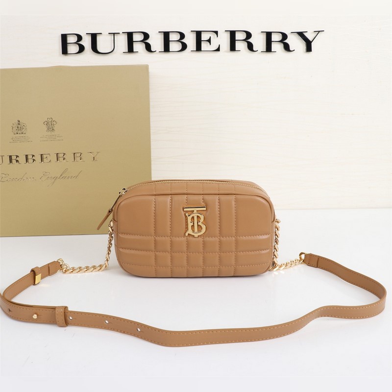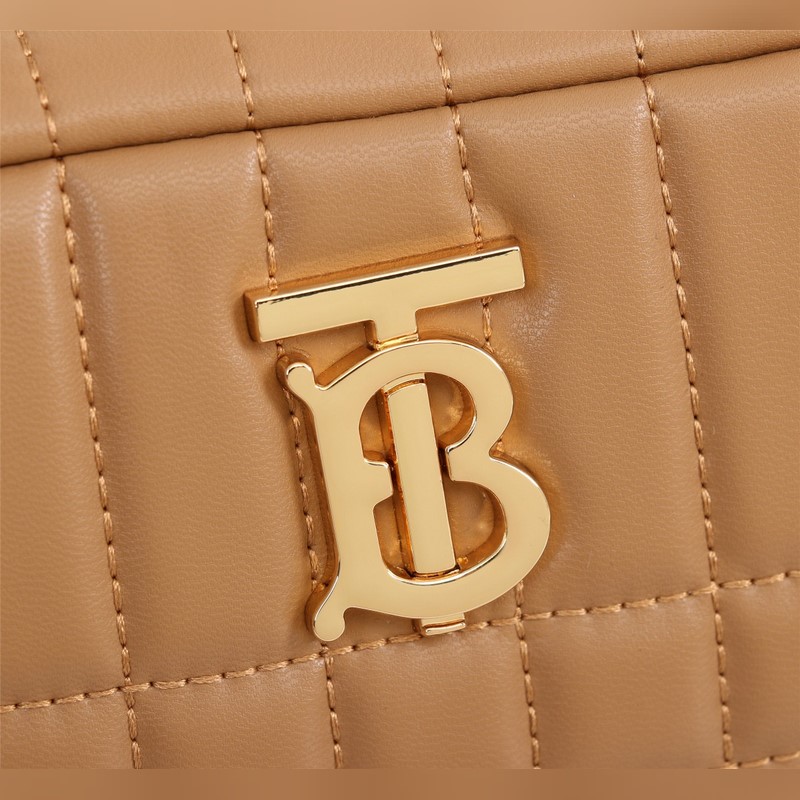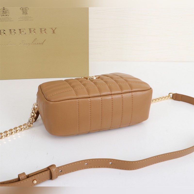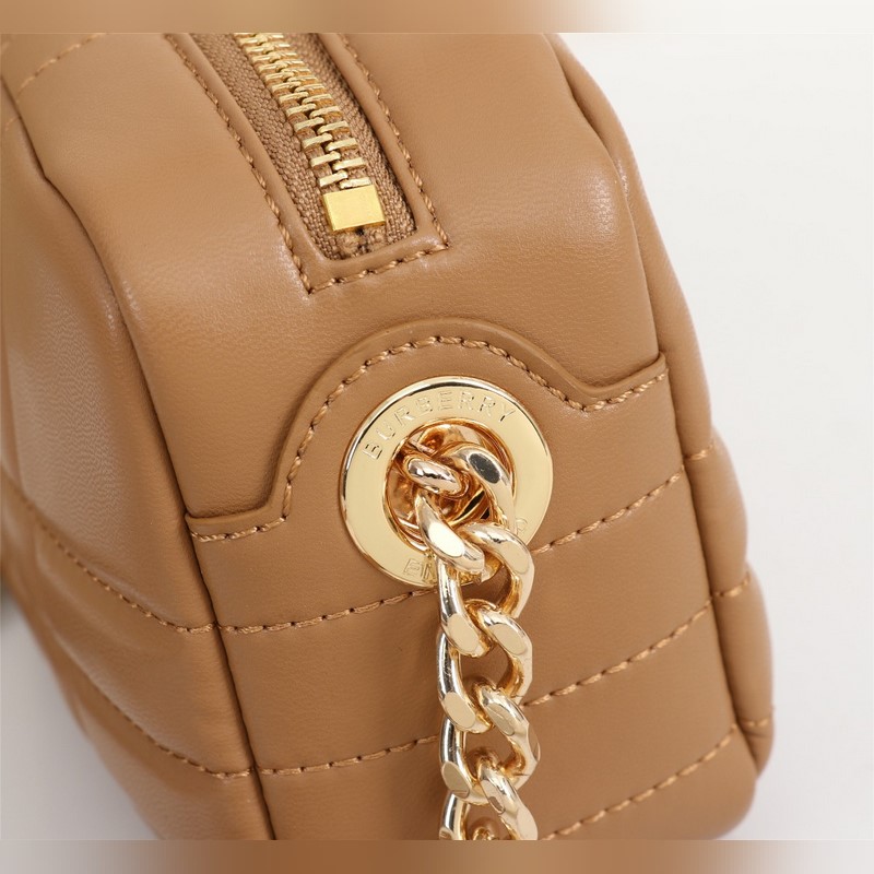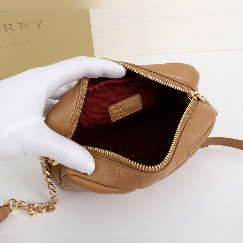 B의 새로운 작은 양가죽 퀼팅 스쿨 스타일 Rona 가방은 토마스 버버리만의 로고와 반짝이는 체인 숄더 스트랩이 특징입니다. 어깨에 메거나 상단 손잡이를 이용해 클러치 백처럼 연출할 수 있습니다. 19x5.5x11cm 8391
