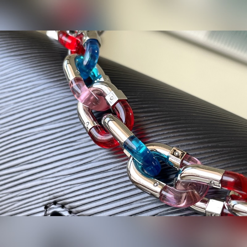 아이템 번호: M57654 블랙 미디엄 체인 백 2015년 연말연시 컬렉션은 신고전주의 스타일을 선포합니다. 이 가방은 브랜드의 시그니처인 에피 가죽으로 만들어졌으며 금속의 찬란한 광택을 발산하는 조각 같은 트위스트 잠금장치로 장식되어 있습니다. 영리하게 윤곽이 잡힌 가방 바닥에는 비밀 공간이 숨겨져 있습니다. 슬라이딩 체인 숄더 스트랩은 접거나 펼 수 있어 어깨에 메거나 크로스 바디로 메는 것이 가능하며 낮과 밤의 다양한 상황에 어울리는 미적 매력을 선사합니다. 크기 23 x 17 x 9.5cm(길이 x 높이 x 너비) 아이템 번호: SG96181350