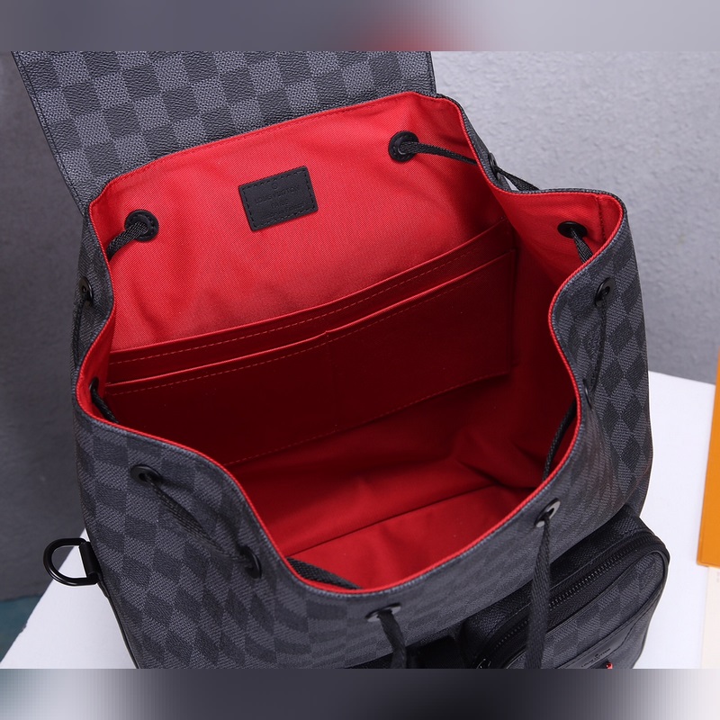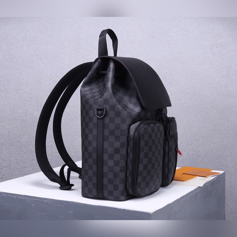 LV 유틸리티 백팩 올스틸 하드웨어 모델: N40279 유틸리티 백팩은 다미에 그라파이트 캔버스로 만들어졌으며 안감 끈 금속 D링이 달려 있습니다. 큰 사이드 포켓은 비즈니스 요소를 더해 주고 탈착식 어깨끈은 편안한 운반을 가능하게 해 2019년 가을/겨울 컬렉션의 트리오 백팩의 디자인 본질을 이어갑니다. 다미에 그라파이트 코팅 캔버스 소가죽 트림 패브릭 안감 금속 부품 드로스트링 잠금장치 전면 지퍼 잠금장치 메인 수납공간 1개 지퍼 외부 포켓 1개 내부 패치 포켓 1개! 크기: 33 x 41 x 16cm