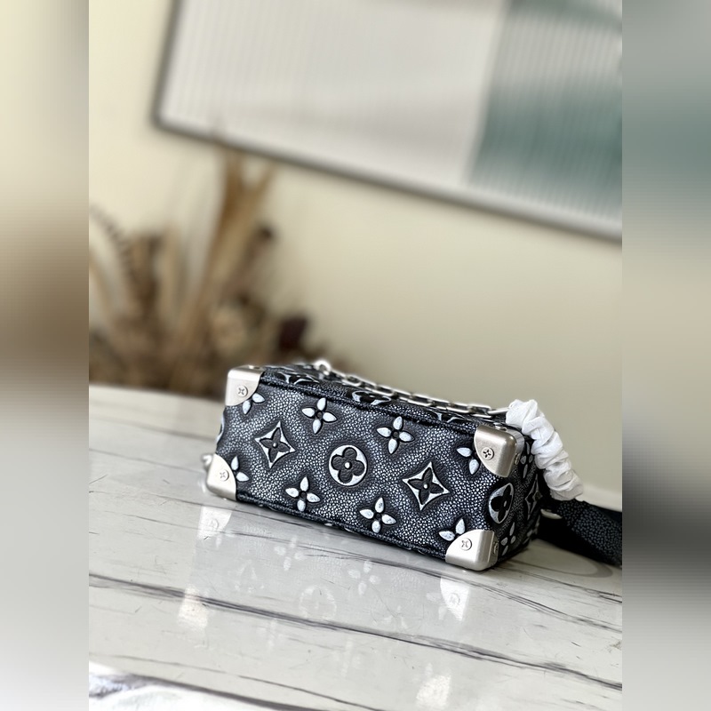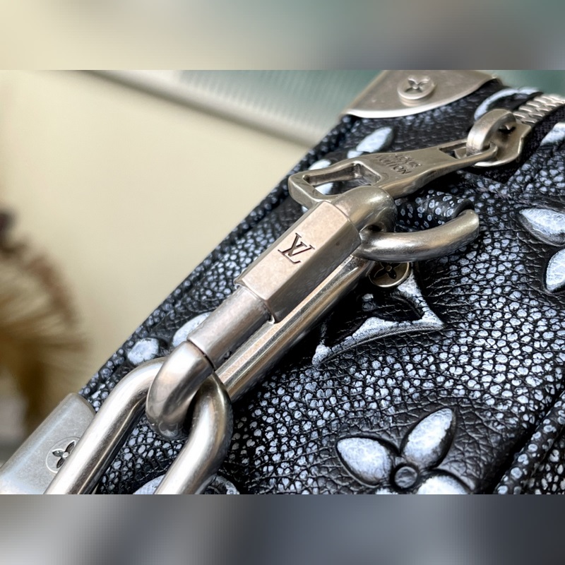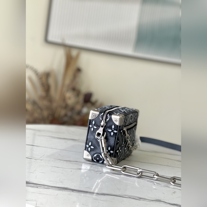 스타일 번호: M21368 이 핸드백은 데님 느낌을 주는 소가죽 질감에 엠보싱과 프린팅 기법을 사용하여 얼룩덜룩하고 바랜 효과를 줍니다. 체인과 강화된 모서리는 금속 광택이 나며 컴팩트한 디자인으로 일상용품들을 보관할 수 있습니다. 크기: 18.5 x 13 x 8cm(길이 x 높이 x 너비) 아이템 번호: SG96181350