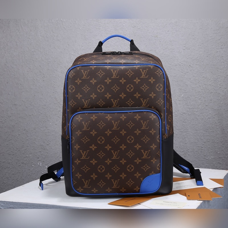 LV 딘 배낭 모델: M45867 이 딘 백팩은 모노그램 마카사르 캔버스에 소가죽 트리밍이 되어 있으며 모서리가 뾰족한 정사각형 모양입니다. 하단 상단 핸들과 외부 전면 포켓은 밝은 파란색으로 포인트를 주어 현대적인 분위기를 자아냅니다. 노트북을 넣을 수 있는 충분한 공간과 3개의 내부 포켓 1개의 지퍼식 전면 포켓이 있습니다. 모노그램 마카사르 코팅 캔버스 1개 패브릭 안감 1개 소가죽 트림 1개 무광 블랙 금속 부속품 1개 길이 조절 가능한 어깨 스트랩 1개 내부 패치 포켓 1개 지퍼식 전면 포켓 1개! 크기: 31 x 41.5 x 15.5cm