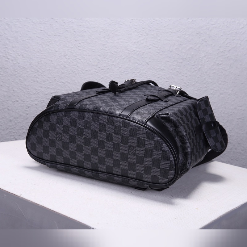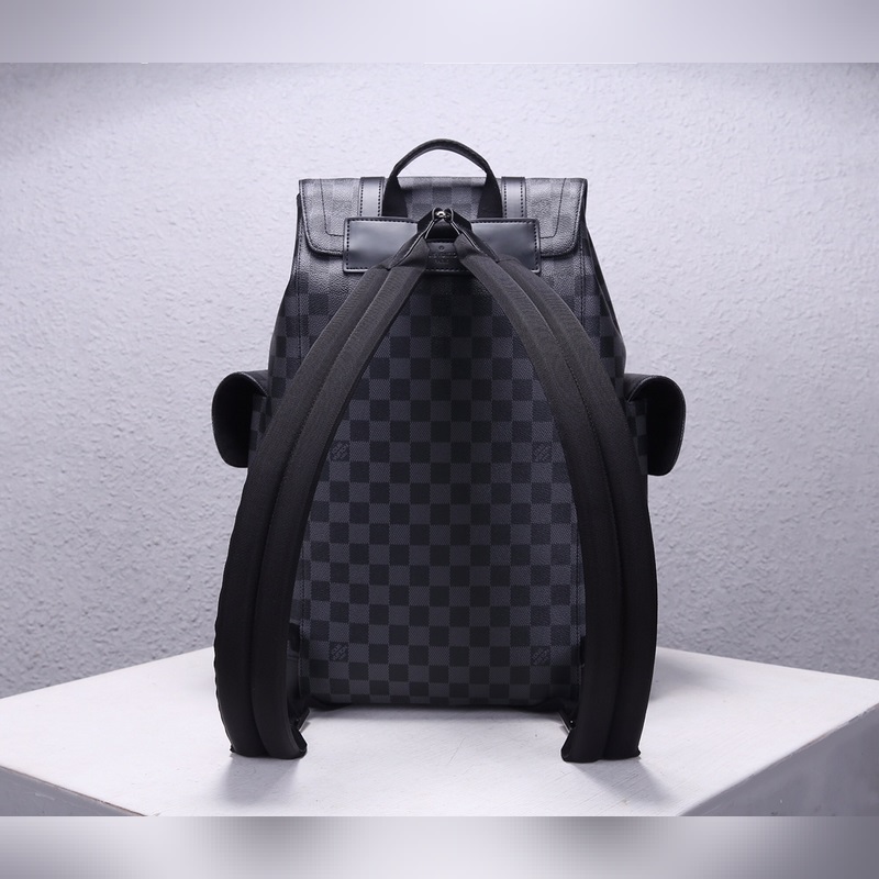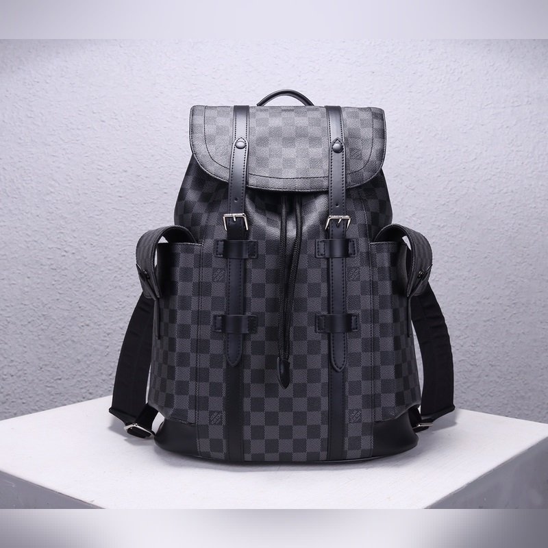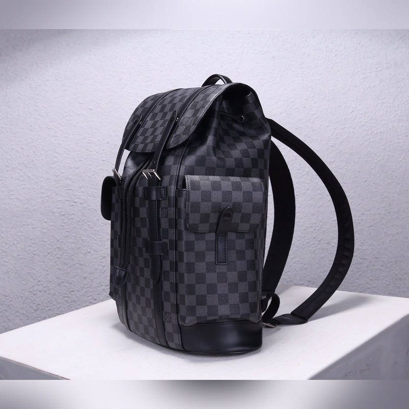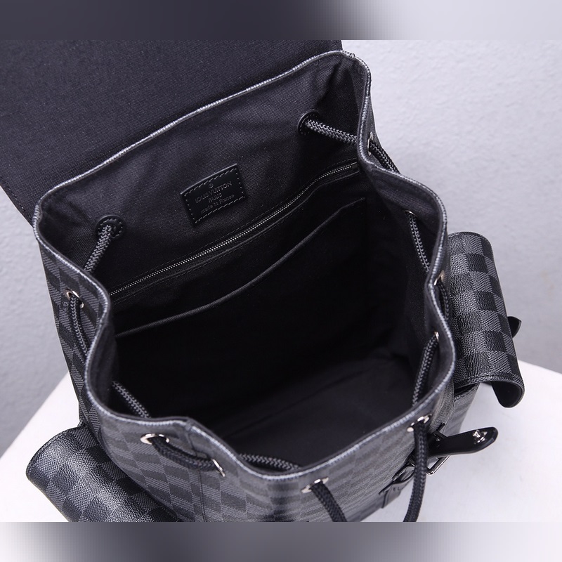 LV 크리스토퍼 다기능 올스틸 하드웨어 소형 배낭 모델: N41379 넓은 내부 공간과 눈길을 사로잡는 외관 덕분에 일상적으로 야외에서 사용하기 좋은 가방입니다. 매력적인 디자인이 세련된 느낌을 줍니다. 다미에 그라파이트 코팅 캔버스 길이 조절이 가능한 가죽 어깨끈 1개 소가죽 트림 은색 황동 장식 스냅 단추로 여닫는 플랩 여닫이 패브릭 안감 지퍼가 달린 내부 포켓! 크기: 41 x 48 x 13cm