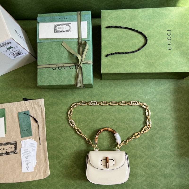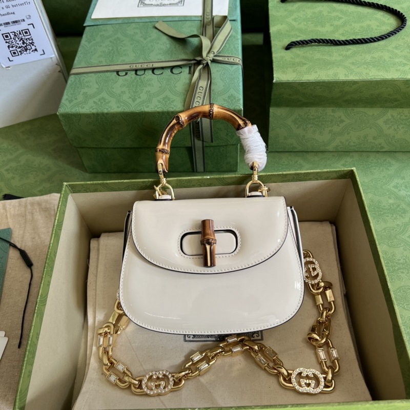 1947년 시리즈의 대나무 무늬 옻칠 가죽 미니 핸드백은 고전적인 요소를