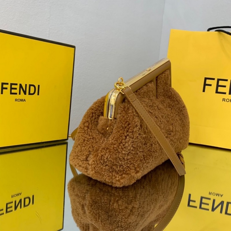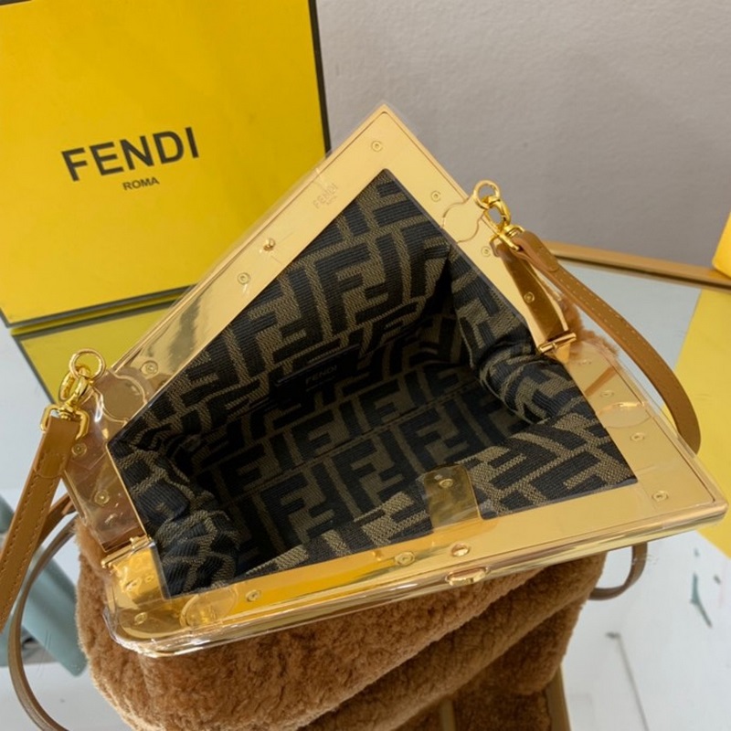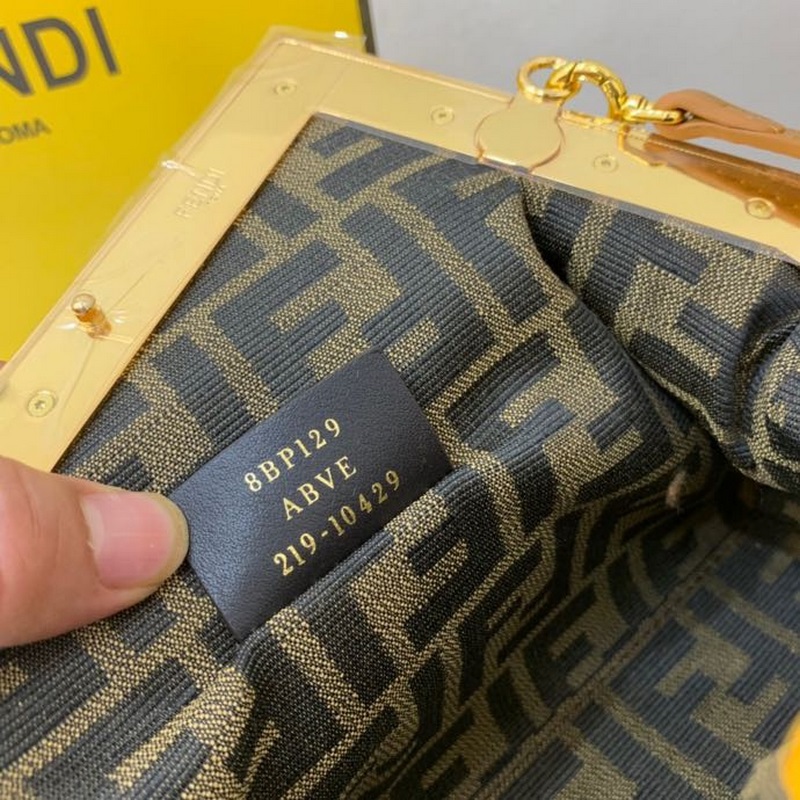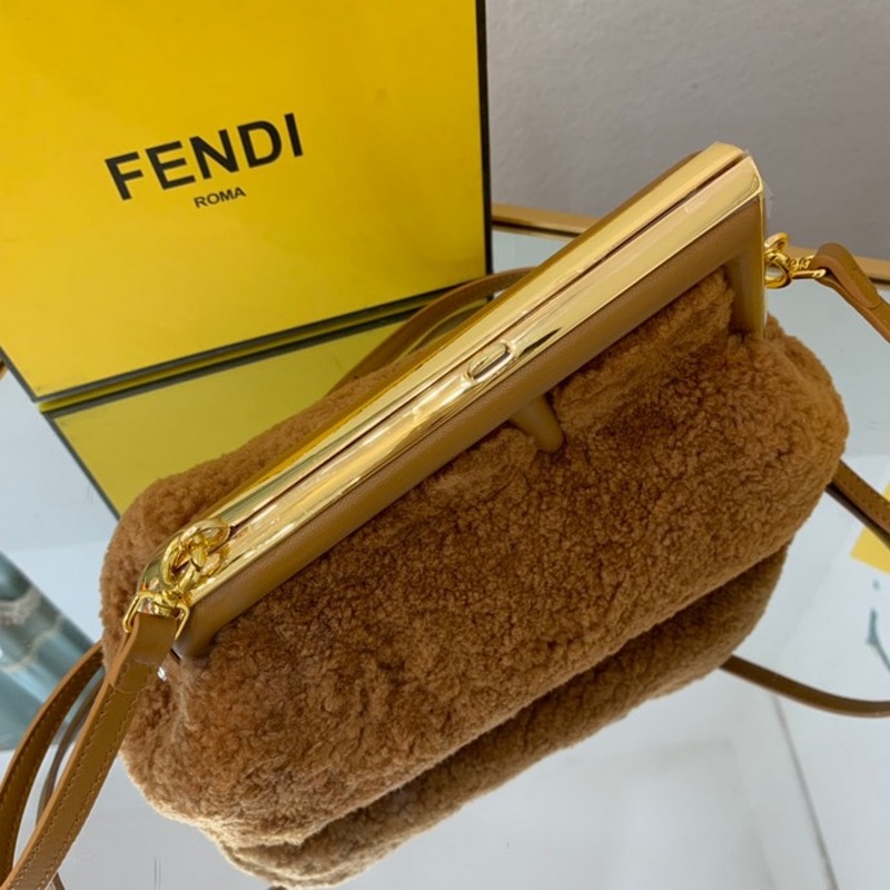 상단 양가죽 소 부드러운 살구색 메리노 양가죽 소재의 작은 가방 아이코닉한 FF 패턴 패브릭 안감의 나파 가죽 소재의 대형 금속 F 클립 버클 탈착식 내부 고리 금색 금속 부속품. 손이나 어깨에 메는 데 사용할 수 있는 탈착식 어깨 스트랩이 포함되어 있습니다. 이탈리아에서 제작되었습니다! 크기: 26*9.5*18cm. 전체 카운터 포장. 품번: BD96181480