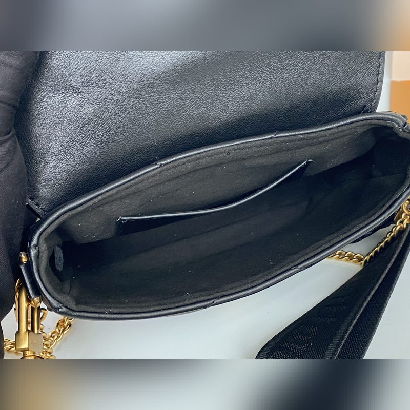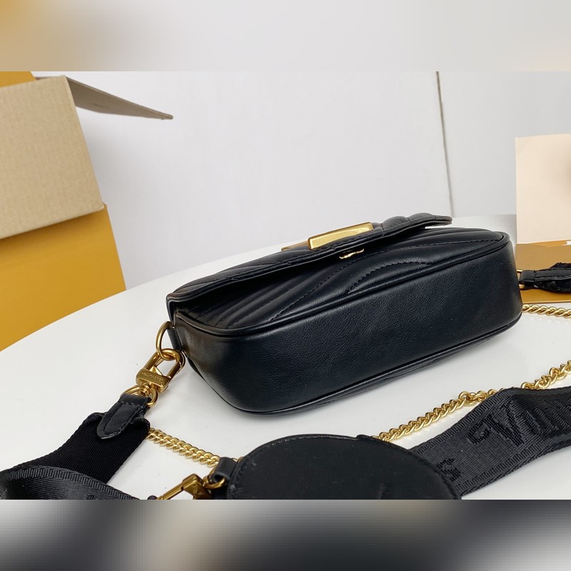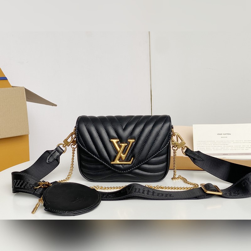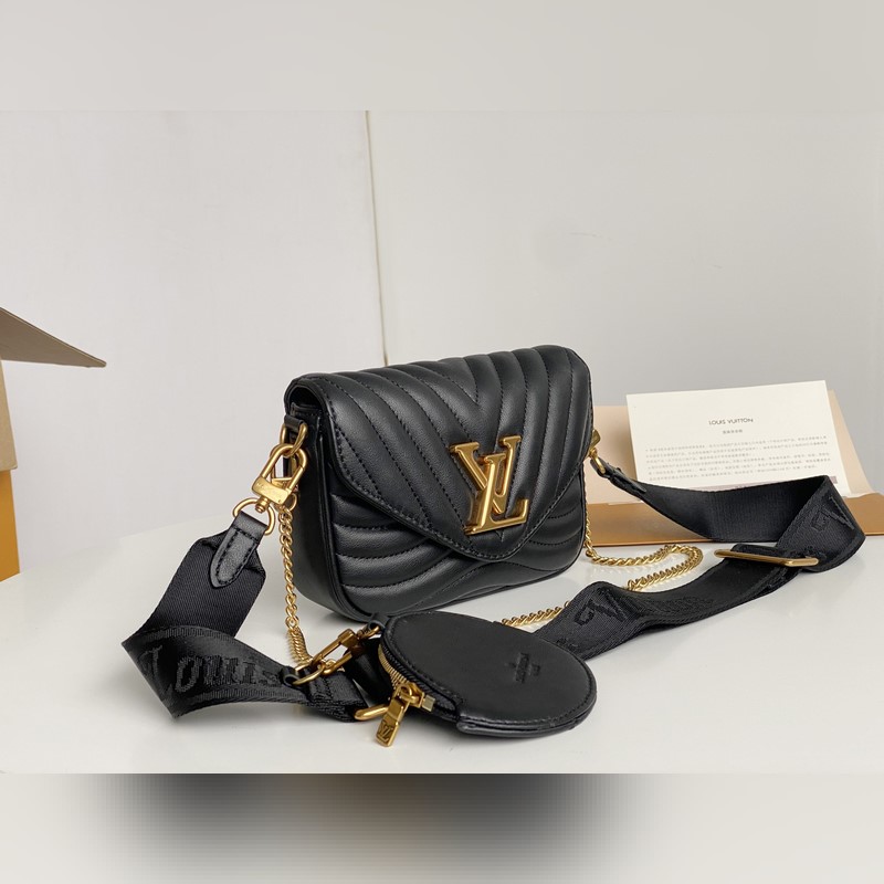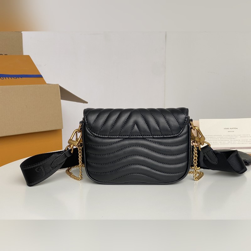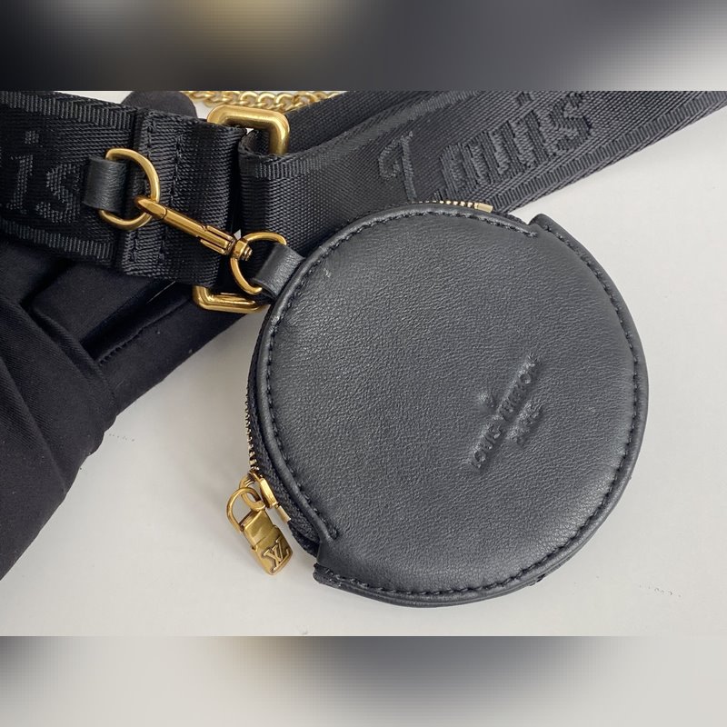 M56466 M56471 M56461 이 다용도 뉴 웨이브 멀티 포셰트 크로스 바디 백은 퀼팅 송아지 가죽으로 제작되었습니다. 넓은 스트랩에는 루이비통의 이니셜이 자수로 새겨져 있으며 금색 체인이 달려 있어 가방을 손으로 들거나 어깨에 메고 다닐 수 있습니다. 둥근 동전 지갑은 스트랩의 스프링 클립에 끼울 수 있습니다. 이 모든 액세서리는 탈부착이 가능하기 때문에 이 세련된 액세서리를 정말 다양하게 활용할 수 있습니다. 크기: 19-14-5