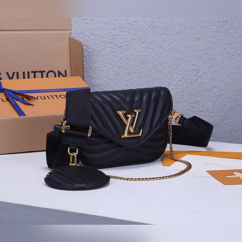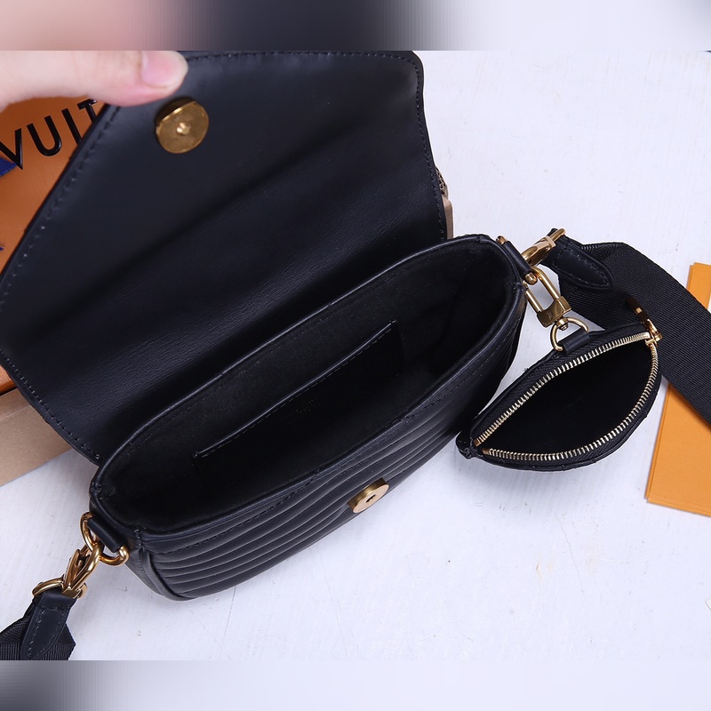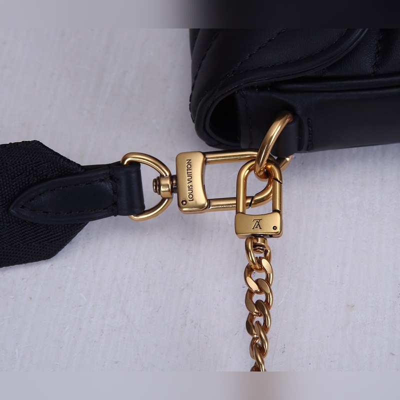 독창적인 개발 올스틸 하드웨어 루이비통은 퀼팅 송아지 가죽으로 만든 다기능 뉴 웨이브 멀티 포쉐트 크로스 바디 백을 만들었습니다. 넓은 스트랩은 루이비통의 영문자 자수로 장식되어 있으며 골드 컬러의 체인 스트랩을 매치하여 가방을 손으로 들거나 어깨에 메고 다닐 수 있습니다. 둥근 동전 지갑을 스트랩의 스냅 버튼에 걸 수 있습니다. 이 모든 액세서리는 탈부착이 가능하여 이 세련된 액세서리를 정말 다재다능한 아이템으로 만들어 줍니다. 스웨이드 송아지 가죽 송아지 가죽 트리밍 마이크로파이버 안감 빈티지 골드 컬러 금속 부속품 탈부착 및 길이 조절이 가능한 어깨 스트랩! 모델: M56461; 크기: 19x14x5cm