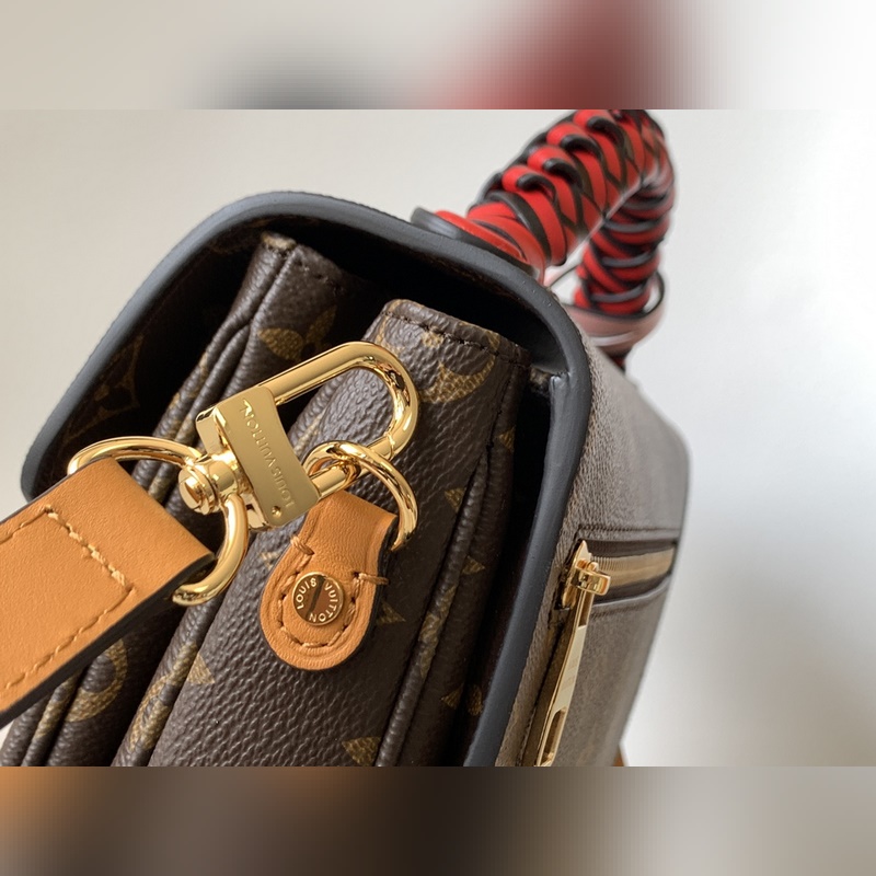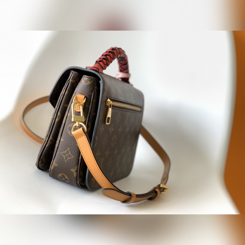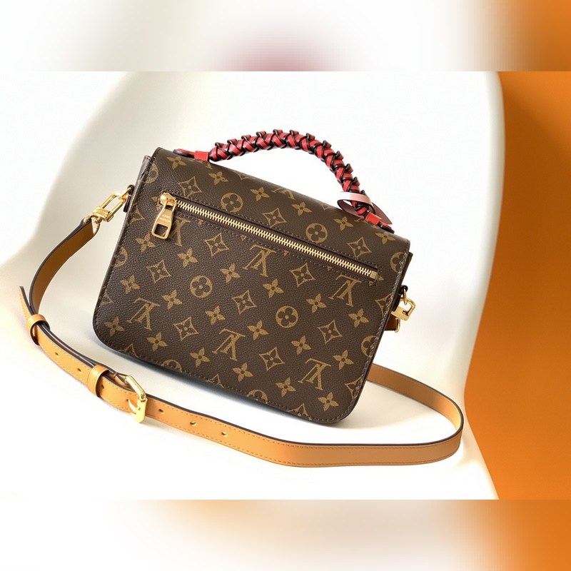 메티스 파우치 핸드백 M44668 적갈색 M45152 흰색 M43984 오렌지색 메신저 백 손으로 짠 직물 손잡이와 염색 테두리로 장식된 이 메티스 파우치에는 독특한 매력이 있습니다. 부드럽고 컬러풀한 소가죽과 클래식한 모노그램 캔버스 소재의 대비가 돋보이는 이 컴팩트한 핸드백은 큰 LV 가죽 트리밍이 인상적인 악센트를 더해줍니다. 탈착식 스트랩이 포함되어 있습니다. 이것만 있으면 손이 자유로워집니다. 세부 기능 25.0 x 19.0 x 7.0cm(L x H x W) 9.8 x 7.5 x 2.7인치(L x H x W) 오렌지-레드 모노그램 코팅 캔버스 부드러운 소가죽 트림 마이크로파이버 안감 금색 금속 부속품 상단 꼰 손잡이 탈부착 및 길이 조절이 가능한 어깨 스트랩 대형 LV 가죽 트리밍 지퍼 잠금 외부 포켓 내부 칸막이 3개