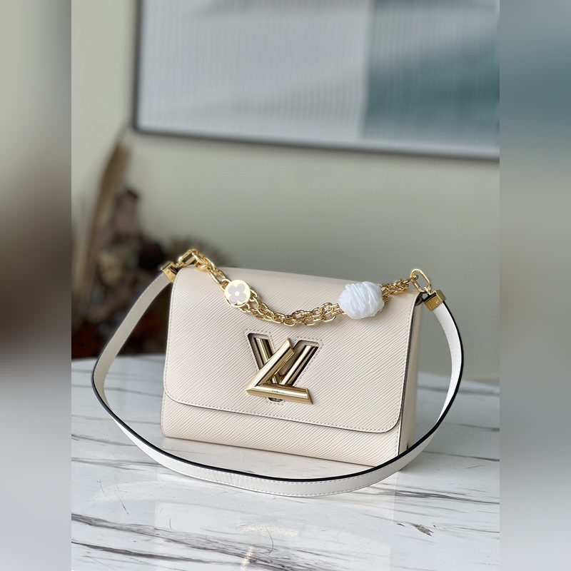 M59403 베이지 이 트위스트 미디엄 백은 손으로 에나멜 처리한 모노그램 플라워가 새겨진 새로운 더블 체인이 특징입니다. 아이템 번호: M59403 베이지 새로운 더블 체인과 수작업으로 에나멜 처리된 모노그램 플라워가 돋보이는 이 트위스트 미디엄 백은 장식용으로 사용하든 휴대 옵션을 확장하든 여성스러움을 더해줍니다. 트위스트 락은 클래식한 요소를 이어갑니다. 크기: 23 x 17 x 9.5cm 품번: SG96181380