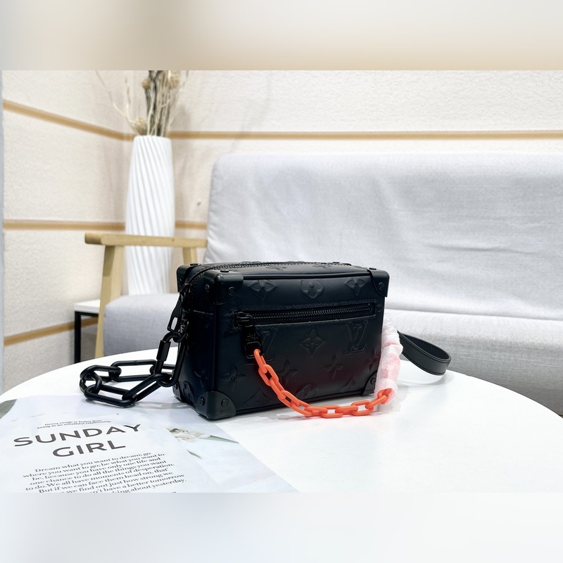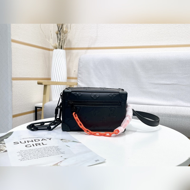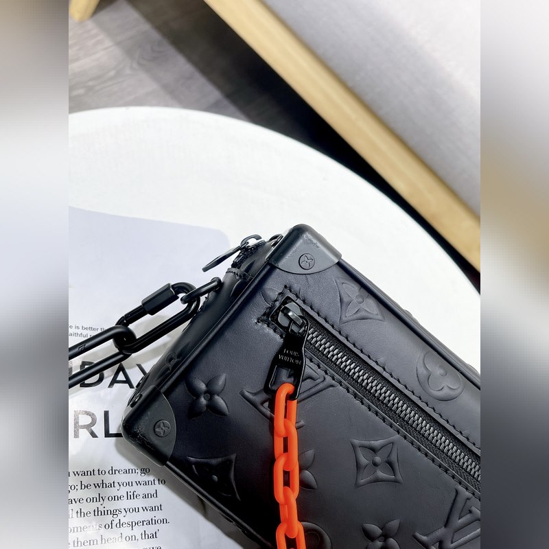 LV 품번: 44480 블랙 가죽 모노그램 박스 세트 미니 소프트 트렁크 핸드백 대조적인 레진 체인이 달린 시그니처 모노그램 프린트. 이 매력적인 핸드백은 날카롭고 각진 모양에 우아한 내부가 특징입니다. 전통적인 여행 가방 제작 방식을 현대적으로 해석한 제품입니다. 레진 체인은 어깨에 메거나 손으로 들 수 있는 다양한 운반 옵션을 제공합니다. 크기: 18.5 x 13 x 8cm. 아이템 번호: RYX96181050