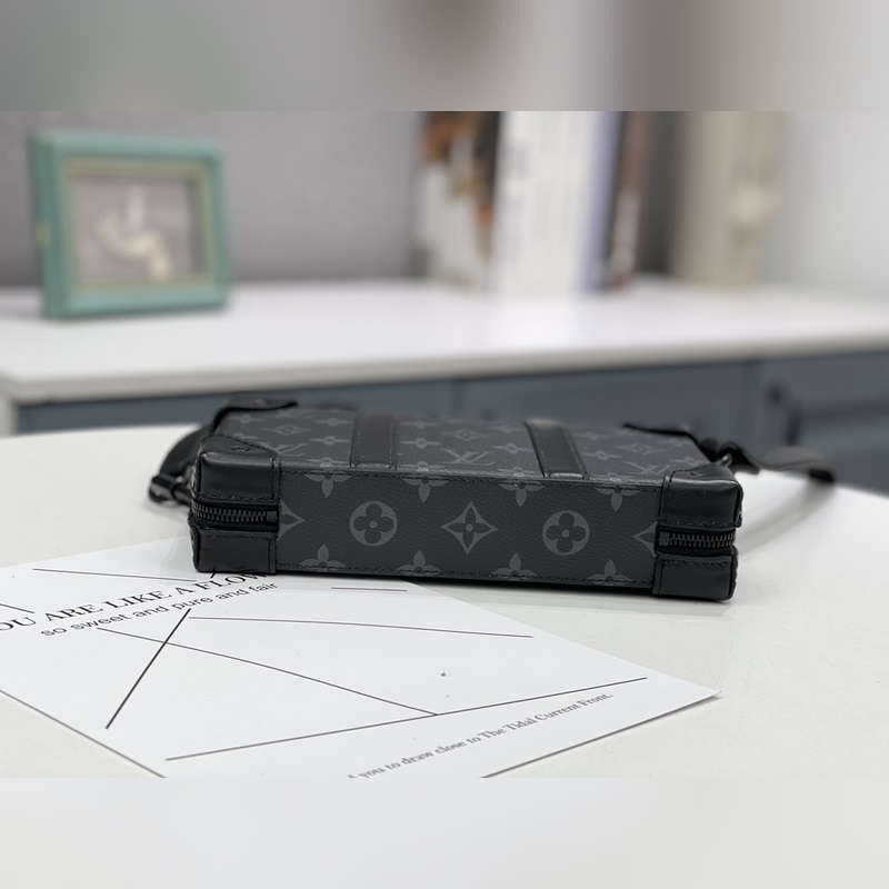 LV 트렁크 지갑 모델 번호: M69838 소프트 트렁크 백은 클래식한 모노그램 이클립스 캔버스로 만들어졌으며 브랜드의 여행 가방 디자인에서 유래된 강화 모서리 같은 요소를 특징으로 하며 소프트 트렁크 백의 축소판을 만들어 냅니다. 지갑과 숄더백 기능이 하나로 합쳐져 여러분의 필요를 트렌디한 방식으로 보관할 수 있습니다. 모노그램 이클립스 코팅 캔버스 소가죽 트림 패브릭 안감 러기지 스타일 강화 모서리 지퍼 여밈 카드 슬롯 내부 포켓 지퍼 포켓 탈부착 및 길이 조절이 가능한 숄더 스트랩! ! 크기: 22.5x14x5cm 품목 번호: RYX9618920