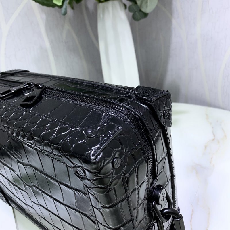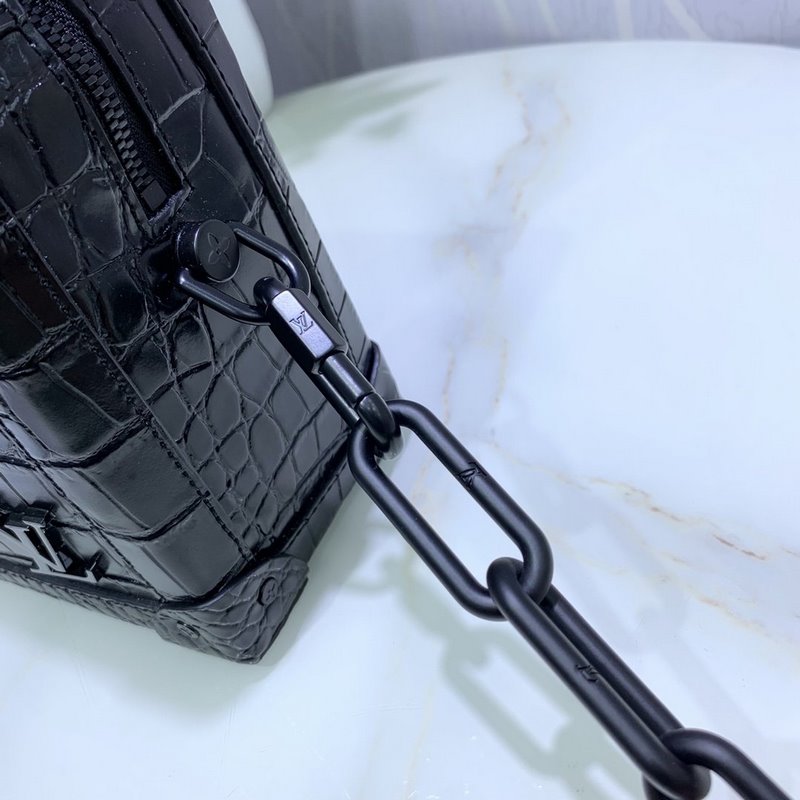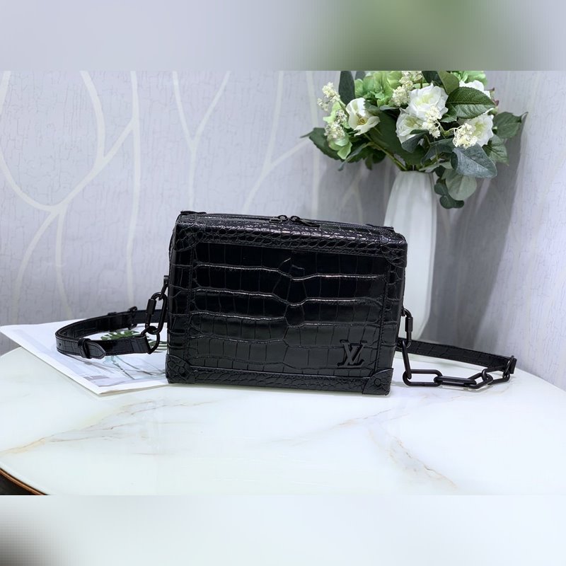 LV 아이템 번호 M44478 악어 무늬 소프트 트렁크 핸드백 이 소프트 트렁크 백은 부드러운 소재로 만들어졌으며 여행에 이상적인 동반자입니다. 메신저 백을 재해석한 제품입니다. 금속 모서리 같은 독특한 요소는 아카이브에 있는 클래식한 여행 가방 디자인에서 영감을 받았습니다. 실용적이고 적응력이 뛰어난 구조 외에도 악어 무늬가 있는 블랙 가죽 체인 남성용 박스형 숄더백에는 무광택 레진 체인 스트랩이 장착되어 있어 현대적인 느낌을 줍니다. 크기: 25x18x10cm 아이템 번호: RYX96181080
