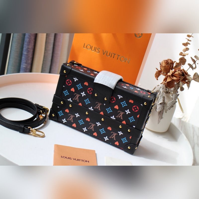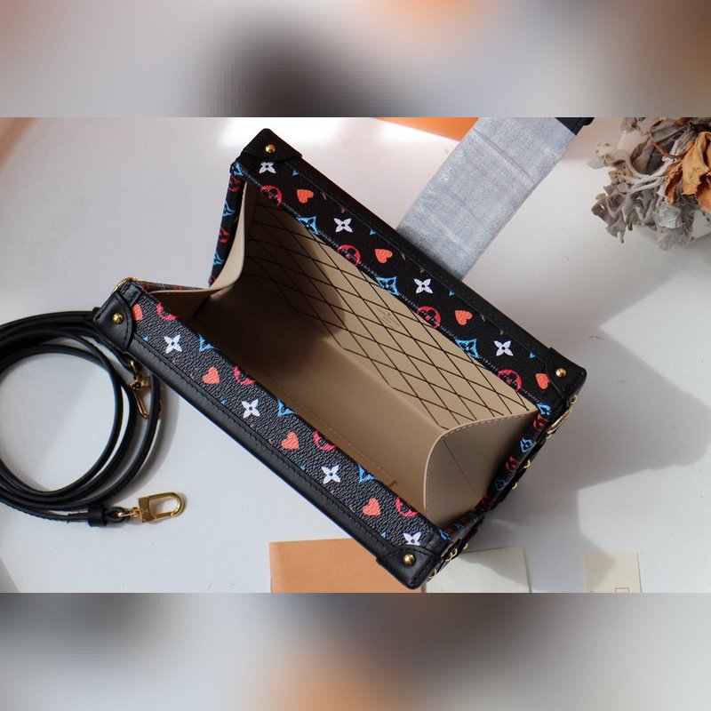 LV PETITE MALLE 패션쇼 모델 No.: M40273 상자 주머니 유럽과 미국의 새로운 복고풍 스타일 금속 질감이 가득한 컴팩트한 사각형 상자 디자인 우아하고 넉넉한 현대적이고 현대적인 디자인 작은 물건을 휴대할 수 있을 뿐 아니라 당신의 멋진 모습을 장식할 수 있습니다. 작고 가벼운 핸드헬드 디자인과 유연한 긴 어깨 끈은 스마트폰 신용카드 열쇠 등을 쉽게 넣을 수 있습니다. 순수 스테인리스 스틸 투톤 액세서리. 크기: 19*5*11.5cm 아이템 번호: LD9618950