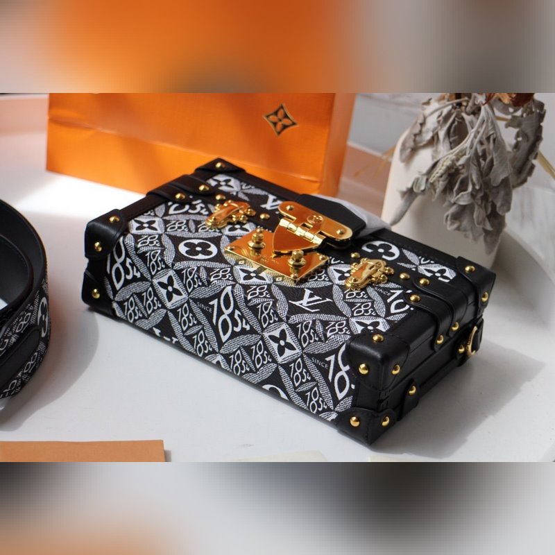 LV PETITE MALLE 패션쇼 모델 No.: M40273 상자 box 유럽과 미국의 새로운 복고풍 스타일 금속 질감이 가득한 컴팩트한 사각형 상자 디자인 우아하고 넉넉한 현대적이고 현대적인 디자인 작은 물건을 휴대할 수 있을 뿐 아니라 당신의 멋진 모습을 장식할 수 있습니다. 작고 가벼운 핸드헬드 디자인과 유연한 긴 어깨 끈은 스마트폰 신용카드 열쇠 등을 쉽게 넣을 수 있습니다. 순수 스테인리스 스틸 투톤 액세서리. 크기: 19*5*11.5cm 아이템 번호: LD9618950