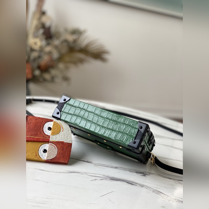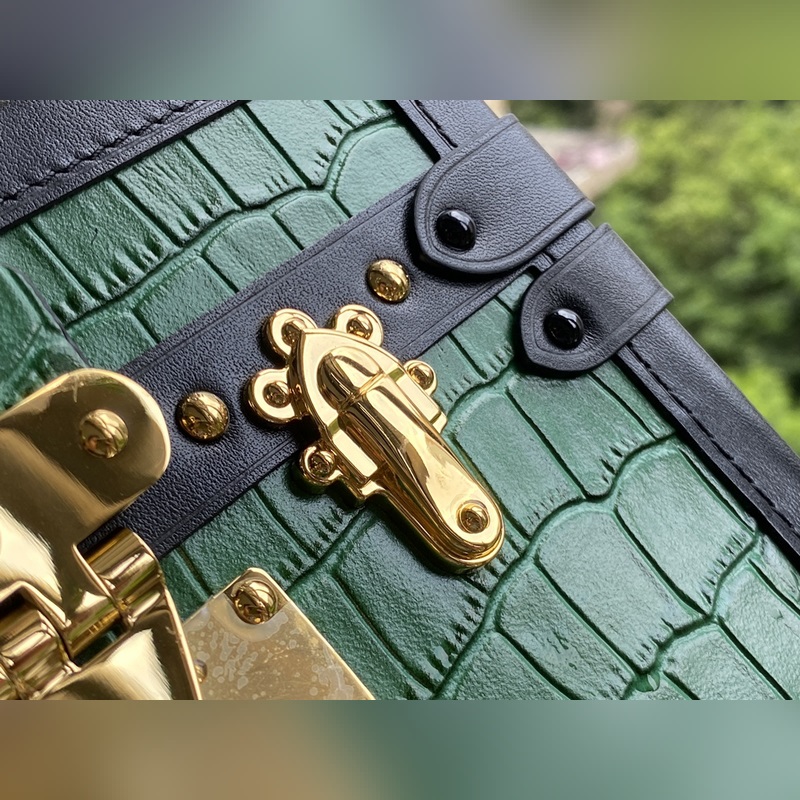 LV 모델 번호: N93145 PETITE MALLE 핸드백 Petite Malle 핸드백은 악어 가죽으로 만들어졌으며 장인 정신과 대담하고 아방가르드한 스타일이 결합되어 있습니다. 이 클래식은 악어 무늬의 나무 상자 작은 정사각형 상자 작은 상자 등 트렁크 제작의 전통을 반영합니다. 낮과 밤 모두에 어울리는 룩입니다. 우아한 악어 가죽으로 더욱 우아해 보입니다. 크기: 20 x 12.5 x 5cm 제품 번호: SG96181250