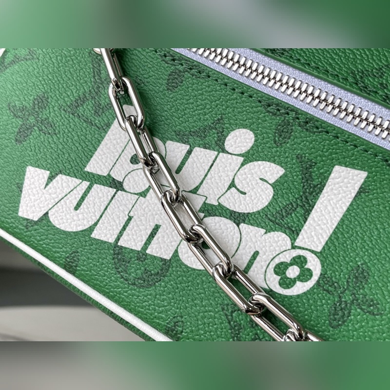 LV 아이템 번호: M80816 녹색 빈티지 박스형 가방 크로스바디 백 이 미니 백은 빈티지 캔버스 표면에 2021-22 가을/겨울 캡슐 컬렉션이 전달하는 패션 성명을 알리는 새로운 로고가 특징입니다. 박스형 모양은 견고한 체인과 조화를 이루고 강화된 모서리는 브랜드의 여행 가방 제작 요소를 계승하며 어깨 끈은 어깨 또는 크로스 바디 운반이 가능합니다. 크기: 18.5 x 13 x 8cm 아이템 번호: SG96181250