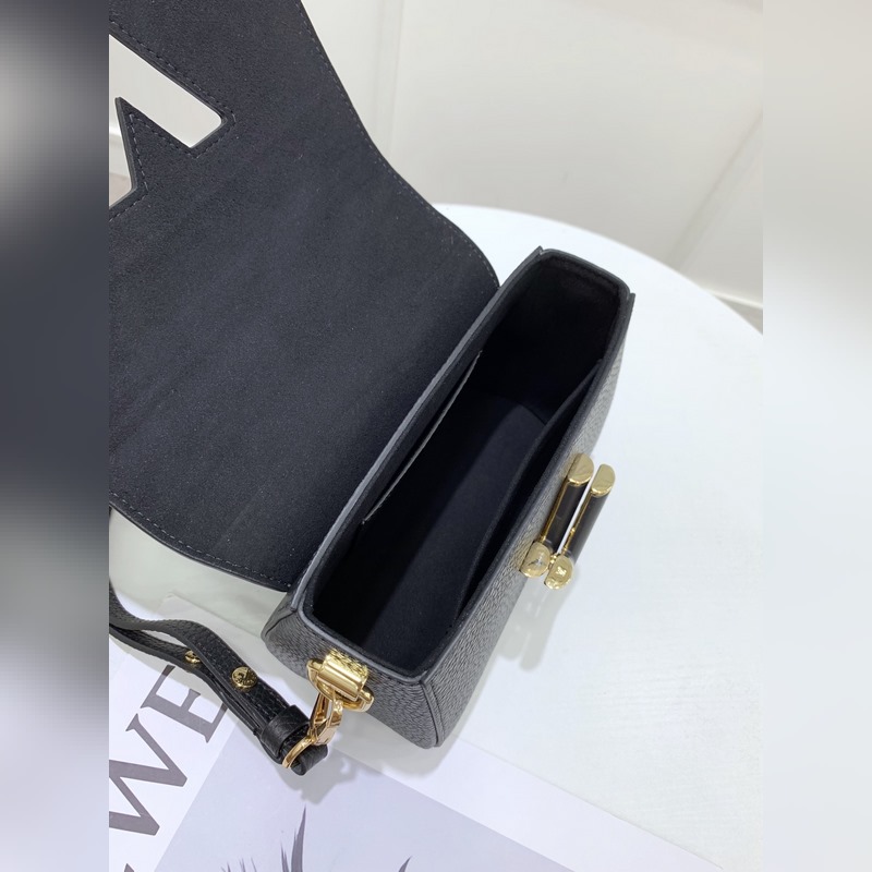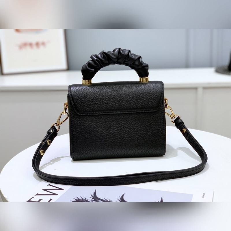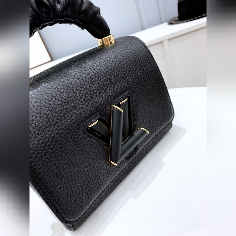 LV [트위스트 트럼펫 가방] 모델 번호: M58688 검정 이 트위스트 스몰 백은 타우리옹 가죽으로 만들어졌으며 실크처럼 부드러운 송아지 가죽으로 만든 주름진 손잡이가 특징입니다. LV 트위스트 락은 전체적인 색상과 잘 어울립니다. 탈부착 가능한 어깨 스트랩이 있어 어깨에 메거나 몸에 걸칠 수 있습니다. 크기: 18 x 13 x 8cm(길이 x 높이 x 너비) 아이템 번호: RYX96181080