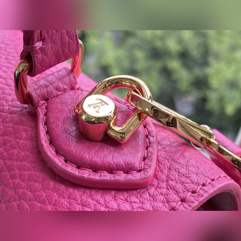 LV 아이템 번호: M57096 로즈 핑크 트위스트 원 핸들 소형 핸드백 특징 컬러 가죽 안감과 상징적인 트위스트 잠금장치가 있는 타우리옹 가죽. 상단 손잡이와 탈착식 어깨끈을 이용해 손으로 들거나 어깨에 메거나 몸에 걸칠 수 있습니다. 크기: 17.0 x 25.0 x 11.0 cm 아이템 번호: SG96181450