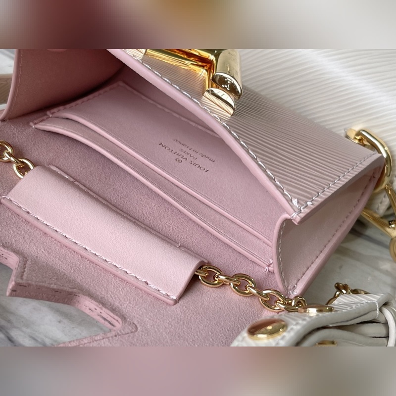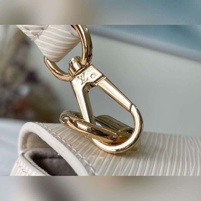 LV 모델 번호: M59886 화이트 파우더 젬니 백 트위스트 트럼펫 백의 상징적인 디자인에 탈부착이 가능한 컴팩트 클러치 백이 추가되었습니다. 어깨끈에 멋지게 부착하거나 카드와 동전 지갑으로 따로 사용할 수 있습니다. 에피 가죽은 유연한 형태를 만들어 품번 SG96181340