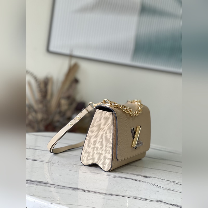 LV 모델 번호: M59033 아몬드 미디엄 핸드백 에피 가죽으로 제작 아이코닉한 LV 트위스트 락은 마음을 보호하고 긍정적인 감정을 불러일으킨다고 여겨지는 월장석으로 만들어졌으며 때로는 투명하고 때로는 진한 월장석의 변화하는 빛과 그림자를 강조하기 위해 레진으로 장식되었습니다. 크기: 23.0 x 17.0 x 9.5cm(길이 x 높이 x 너비) 품번: SG96181380