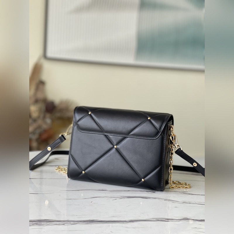 LV 모델 번호: M59029 트위스트 미디엄 핸드백 섬세한 스터드로 장식된 퀼팅 양가죽으로 제작되어 계절 액세서리 컬렉션에 사용된 부드러운 질감을 그대로 전달합니다. 클래식한 트위스트 잠금장치와 체인이 특징입니다. 탈착식 가죽 어깨 스트랩으로 다양한 휴대 스타일을 연출할 수 있습니다. 크기: 23 x 17 x 9.5cm 품번: SG96181400
