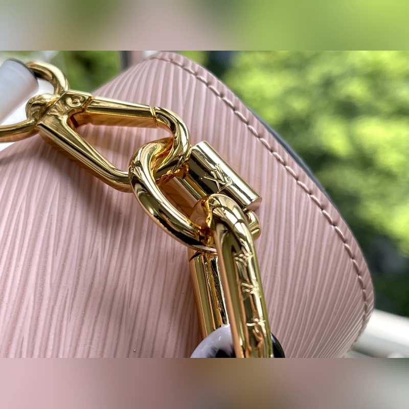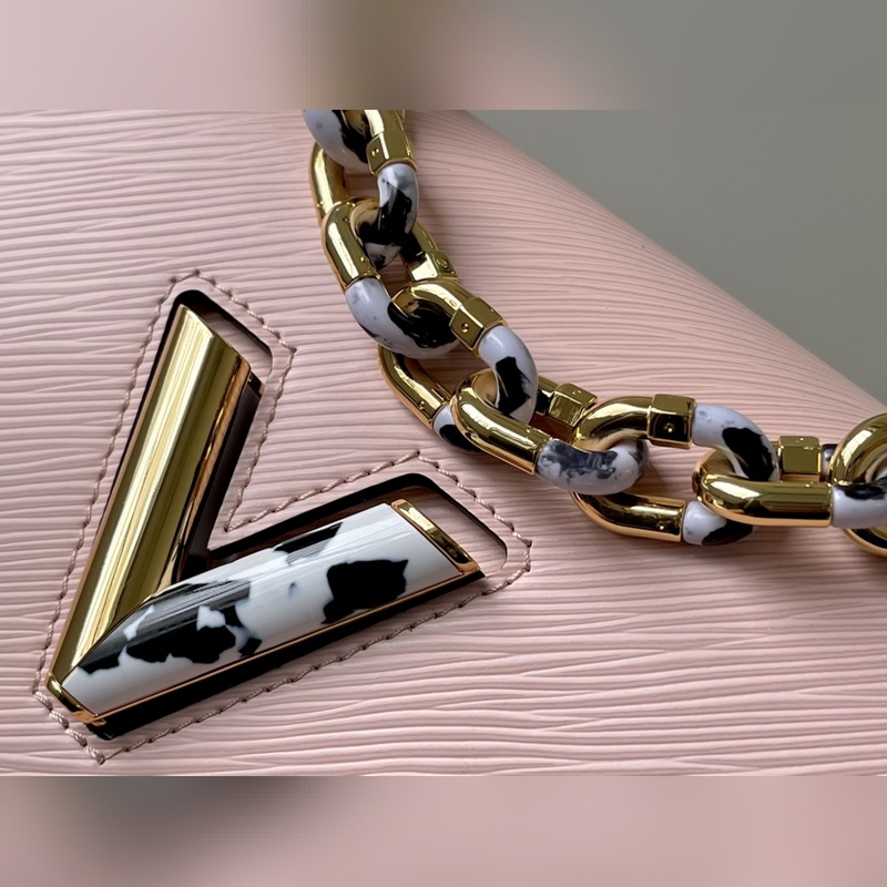 LV 모델 번호: M58715 핑크 물결 무늬 TWIST 중형 핸드백 이 트위스트 미디엄 백은 에피 그레인 가죽으로 만들어졌으며 트위스트 락과 체인에 적용된 2톤 스톤 장식과 토르토이셀 쉘이 디테일에서 브랜드의 정교한 장인 정신을 강조합니다. 탈부착 및 길이 조절이 가능한 어깨 스트랩으로 다양한 운반 스타일을 제공합니다. 크기: 23 x 17 x 9.5cm 품번: SG96181380