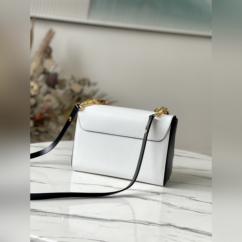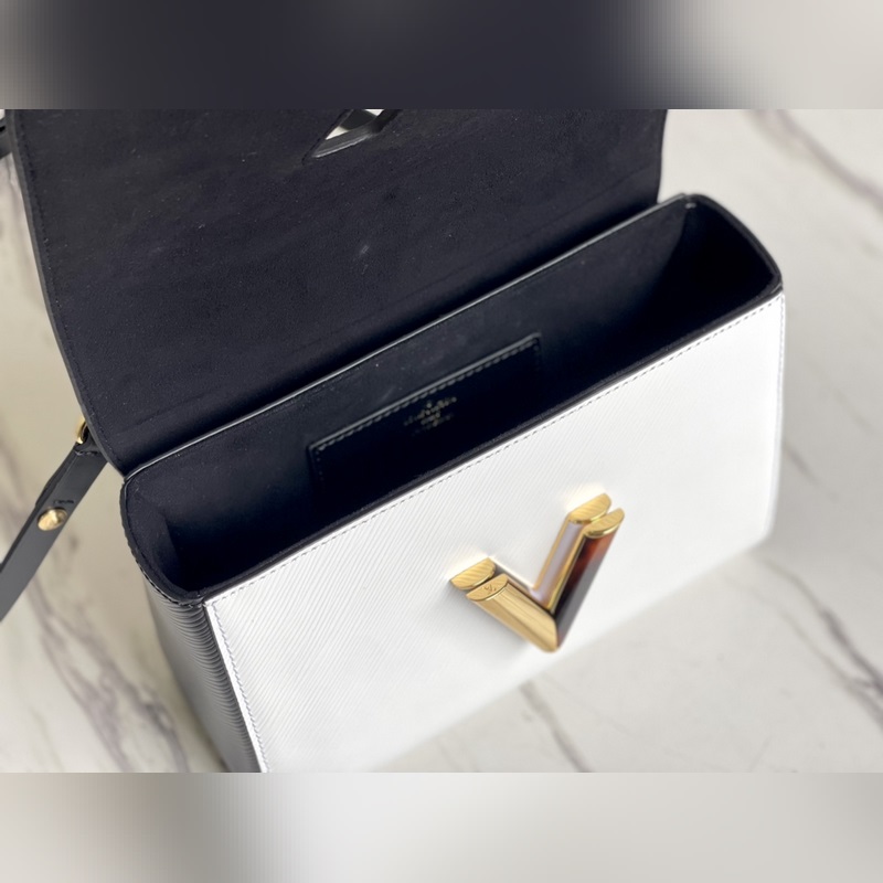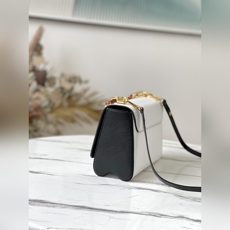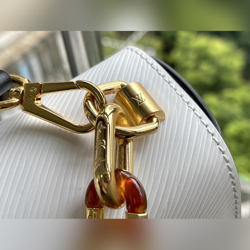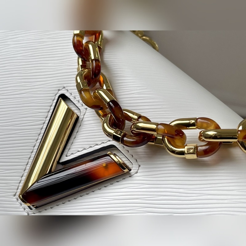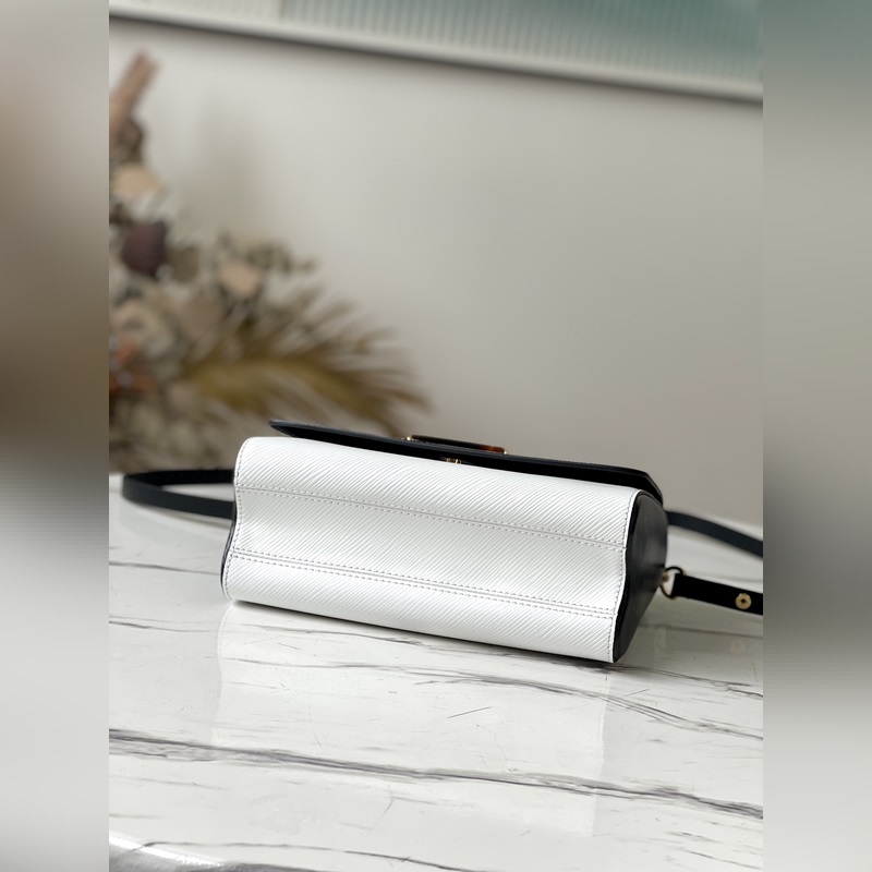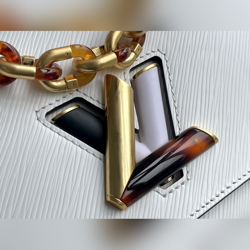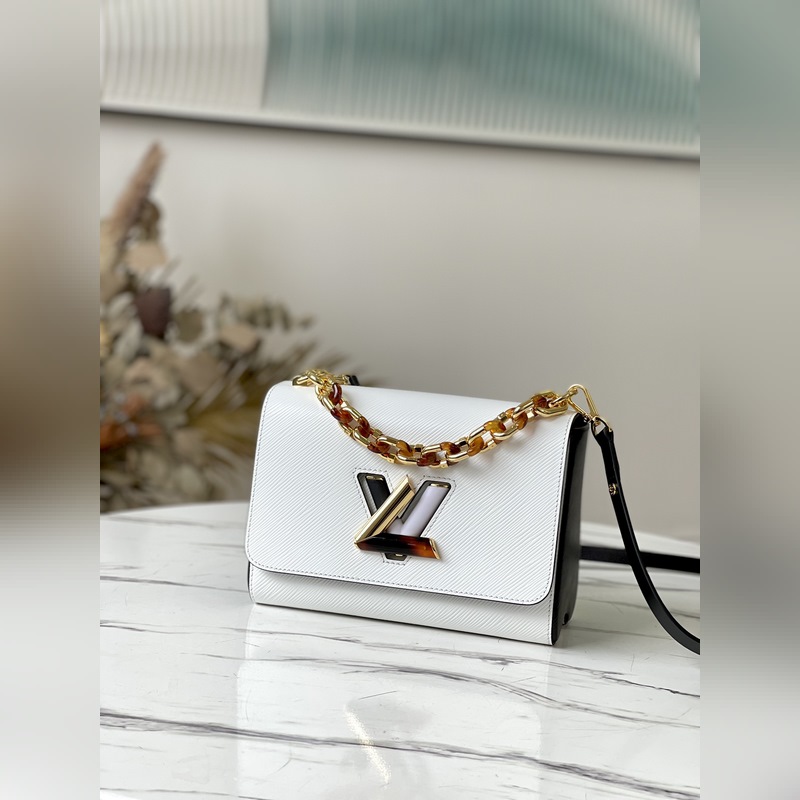 LV 모델 번호: M58715 화이트 워터 리플 TWIST 미디엄 핸드백 이 트위스트 미디엄 백은 에피 그레인 가죽으로 만들어졌으며 트위스트 락과 체인에 적용된 2톤 스톤 장식과 토르토이셀 쉘이 디테일에서 브랜드의 정교한 장인 정신을 강조합니다. 탈부착 및 길이 조절이 가능한 어깨 스트랩으로 다양한 운반 스타일을 연출할 수 있습니다. 크기: 23 x 17 x 9.5cm 품번: SG96181380