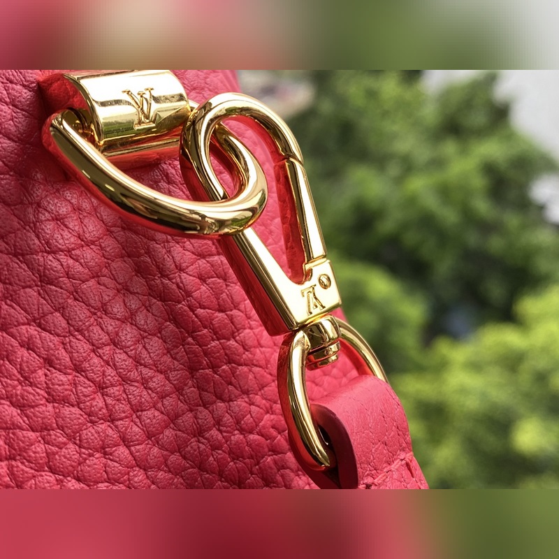 LV 모델 번호: M58691 트위스트 미디엄 핸드백 가방은 타우리옹 가죽으로 만들어졌으며 실크 같은 송아지 가죽으로 만든 주름진 손잡이가 특징입니다. 트위스트 잠금장치는 전체적인 색상과 잘 어울립니다. 탈착식 어깨끈이 있어 어깨에 메거나 몸에 걸칠 수 있습니다. 크기: 23×25×10.5cm 품번: SG96181380
