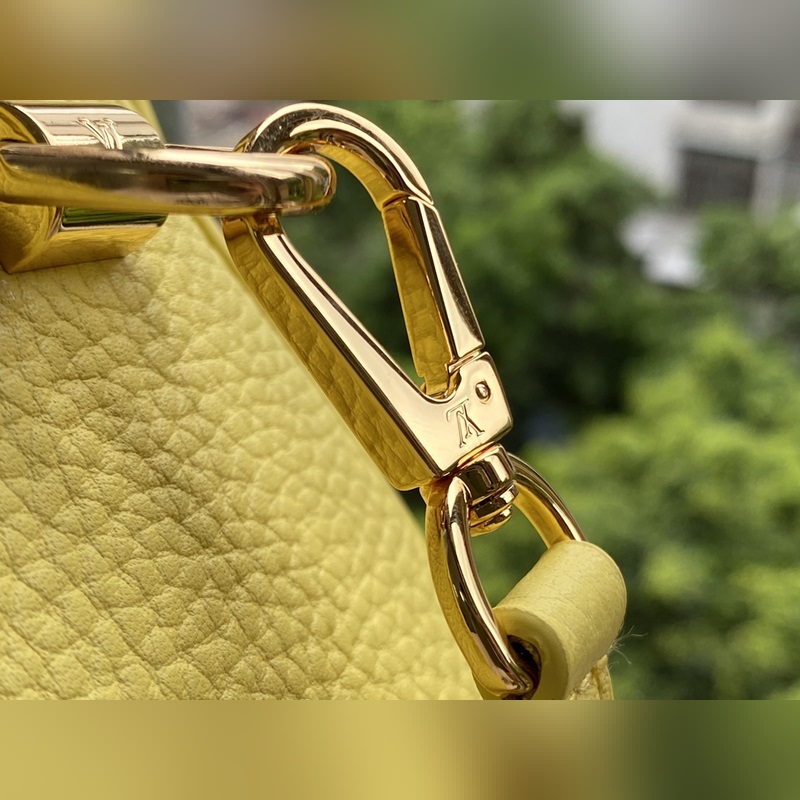 LV 아이템 번호: M58571 트위스트 트럼펫 백 트위스트 클러치백은 소재의 대비를 통해 재미를 줍니다. 타우리옹 가죽 몸체와 부드러운 송아지 가죽으로 만든 주름진 손잡이가 있고 전체적인 색상은 트위스트 락과 조화를 이룹니다. 어깨에 메거나 탈착식 어깨끈을 이용해 몸에 메는 것도 가능합니다. 크기: 19×22.5×10cm 아이템 번호: SG96181350