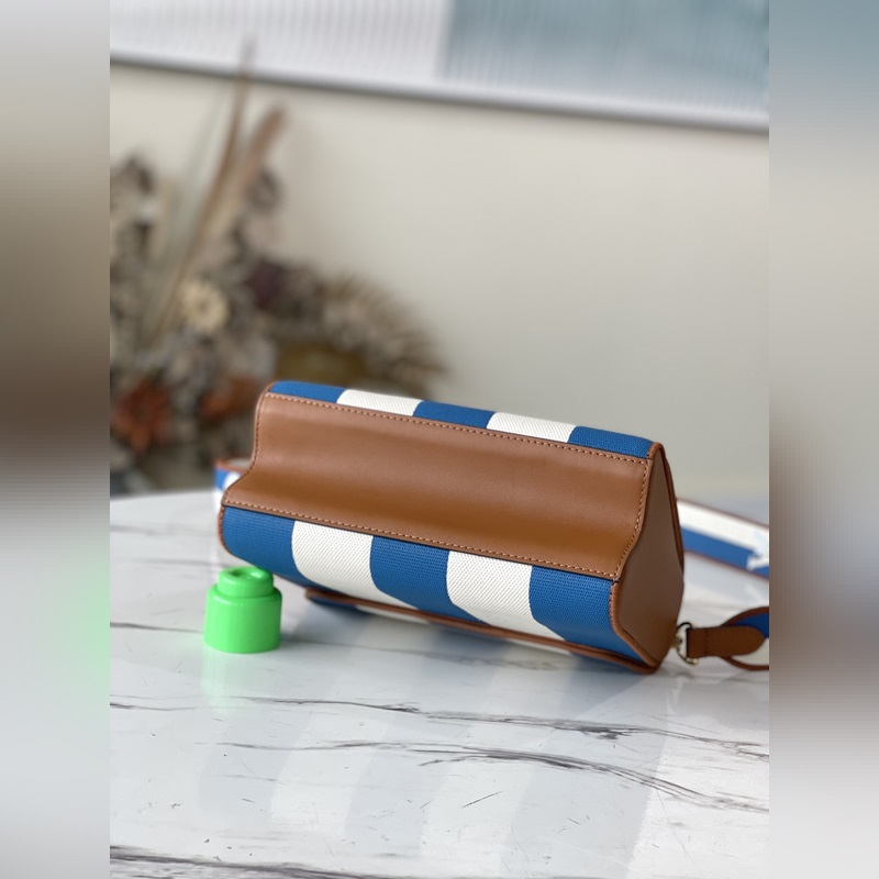 LV 아이템 번호: M57659 파란색 줄무늬가 있는 트위스트 미디엄 백 파라솔 캡슐 컬렉션 트위스트 미디엄 핸드백은 고급스러운 송아지 가죽과 컬러풀한 자수 캔버스를 결합한 제품으로 해변 파라솔의 상징적인 줄무늬와 모노그램 꽃이 가장자리를 따라 숨겨져 있습니다. 탈착식 넓은 어깨 스트랩으로 트렌디한 캐리 스타일을 연출할 수 있습니다. 크기: 23 x 17 x 9.5cm 아이템 번호: SG96181350