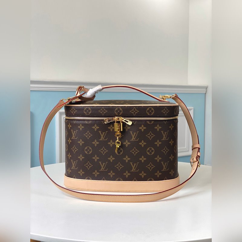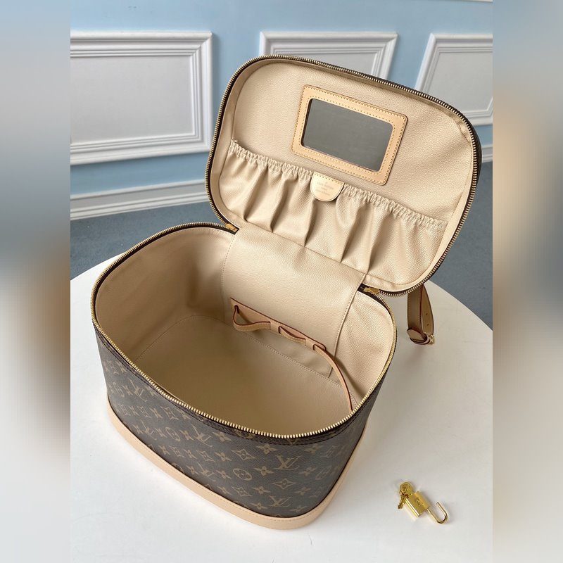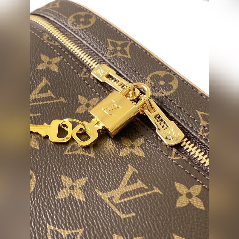 LV 모델 M47280 모노그램 모노그램 캔버스 화장품 케이스 지퍼로 여닫을 수 있고 매력적이고 우아한 모양으로 어깨에 메거나 손에 들고 다닐 수 있으며 거울 지퍼가 달린 주머니 병을 고정할 수 있는 고리가 달려 있습니다. 상세 기능 - 31.5 x 20.0 x 21.0cm. 항목 번호: SG96181350