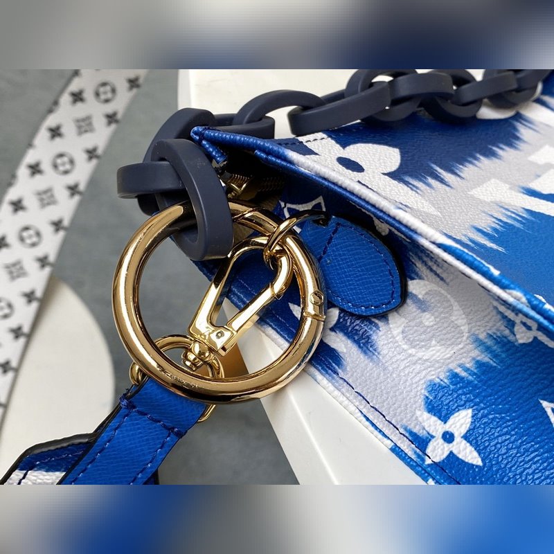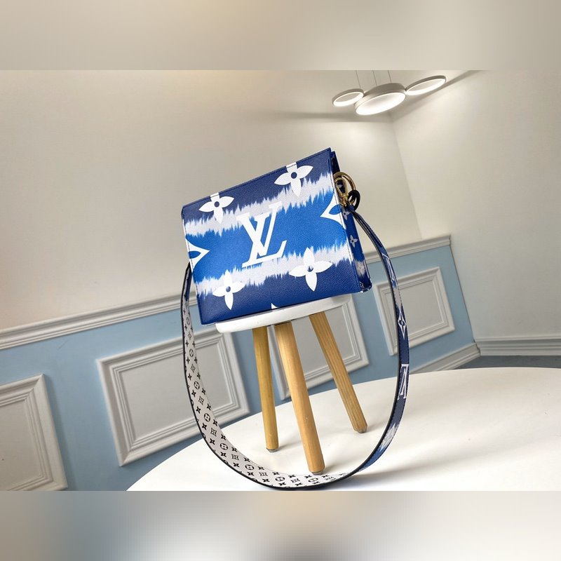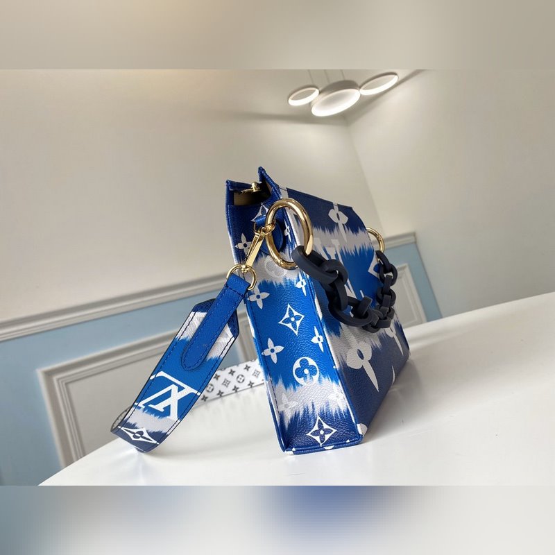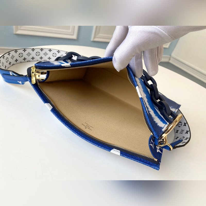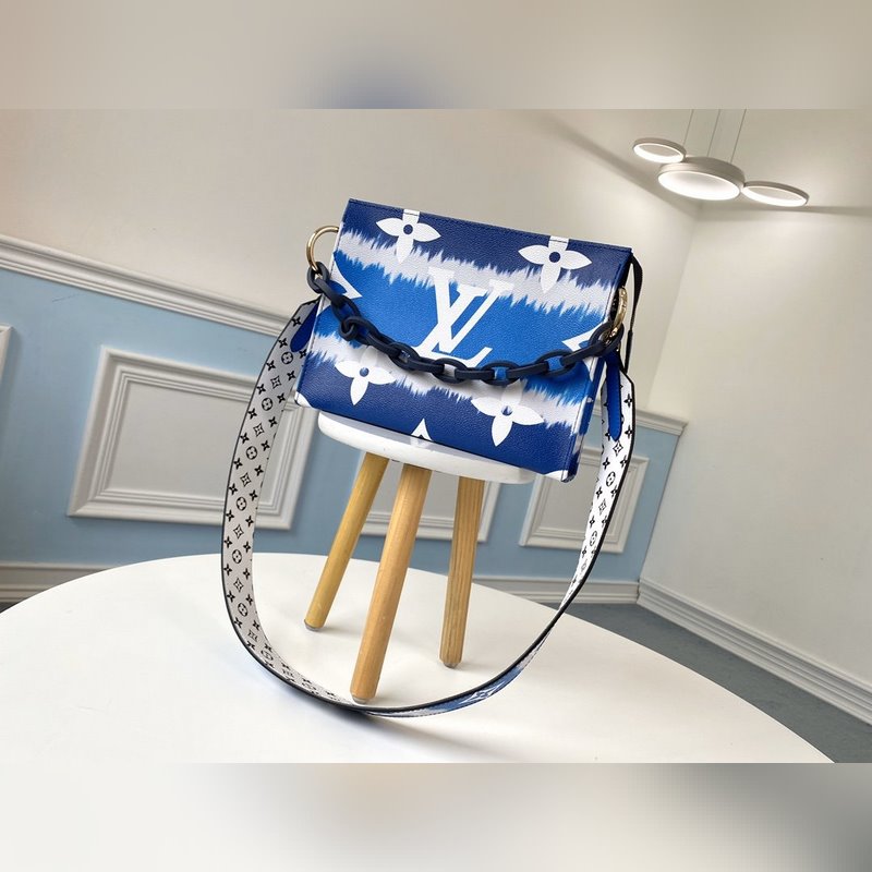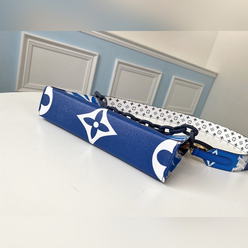 LV 모델 M68136 골드 버클 블루 레인보우 체인 클러치 TOILE