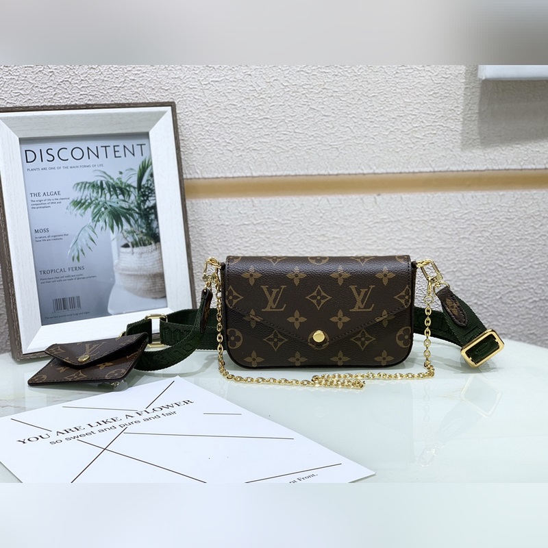 LV 모델 번호: M80091 3피스 세트 멀티 포셰트 펠리시 메인 가방의 마작 가방은 가장 큰 아이폰을 넣을 수 있습니다. 내부에는 하나의 수납공간과 세 개의 카드 슬롯이 있습니다. 작은 카드 홀더는 분리하여 다른 가방에 따로 넣거나 원하는 곳에 걸어 둘 수 있습니다. 조절 가능한 넓은 어깨끈은 어깨에 메거나 다양한 방법으로 몸에 걸칠 수 있습니다. 실용성과 패션을 완벽하게 결합한 제품입니다. 크기: 17x9.6x3.5cm 아이템 번호: RYX9618790
