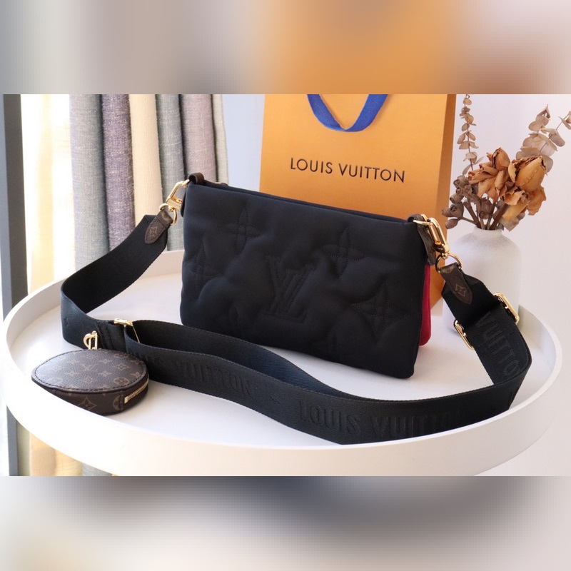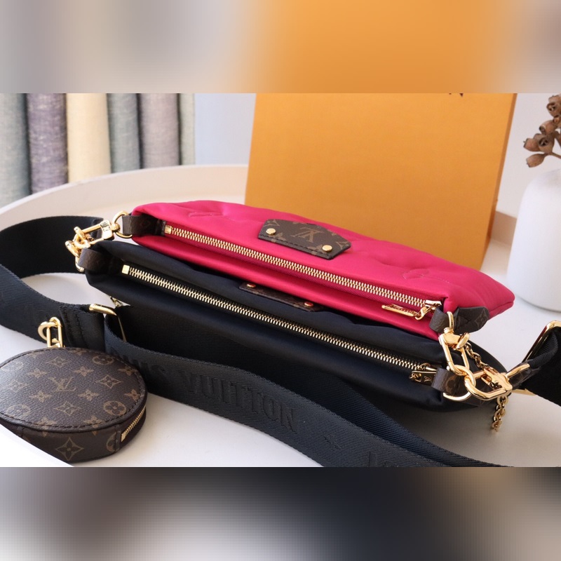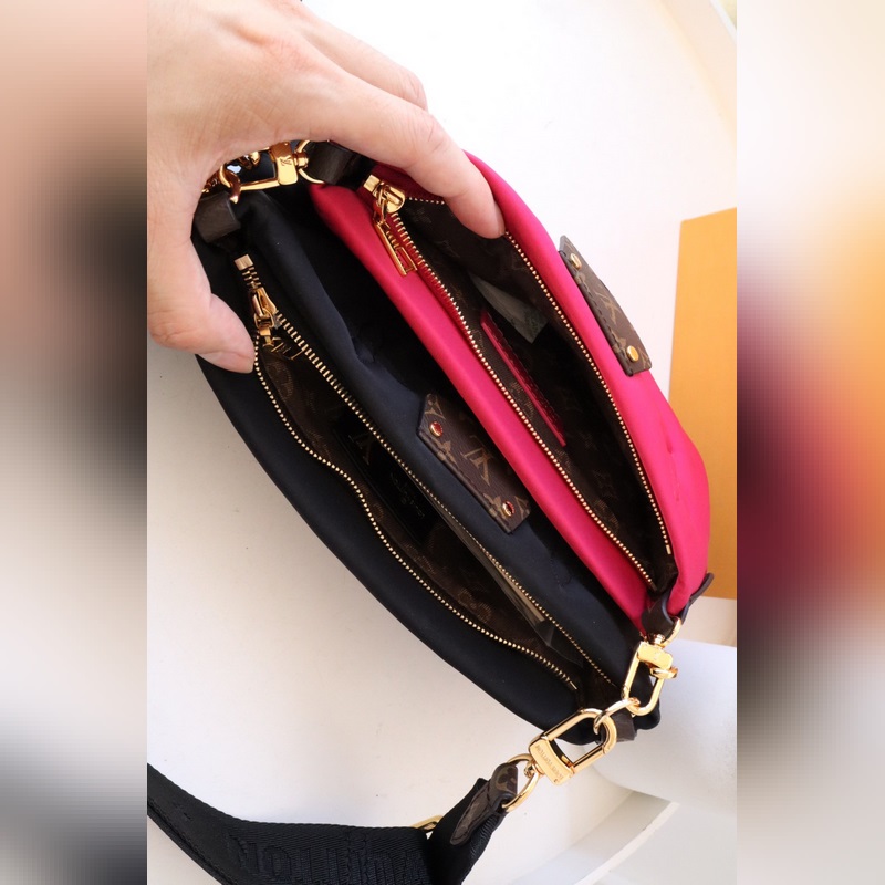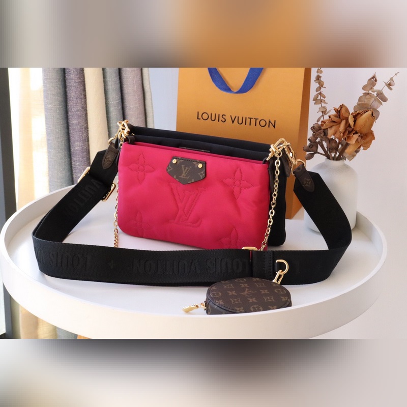 LV 아이템 번호 M58977 M59008 맥시 멀티 파첼레트 액세서리 핸드백 에코닐 재생 폴리아미드로 제작되었습니다. 모노그램 자수 장식의 외피는 부드럽고 폭신한 느낌을 주며 내피는 미니 모노그램 프린트 에코닐 원단으로 제작되었습니다. 여러 개의 포켓과 수납공간이 있으며 포쉐트 액세서리 클러치백 포쉐트 액세서리 미니 클러치백 라운드 동전 지갑을 함께 제공합니다. 대형 가방 25-13 소형 가방 20-11 라운드 동전 지갑 10cm. 아이템 번호: LD96181000