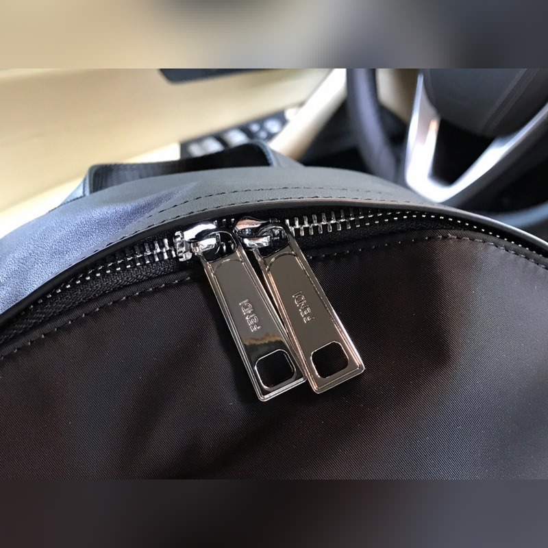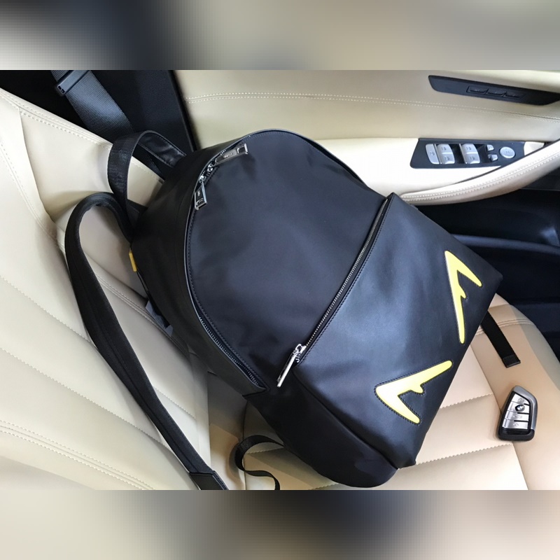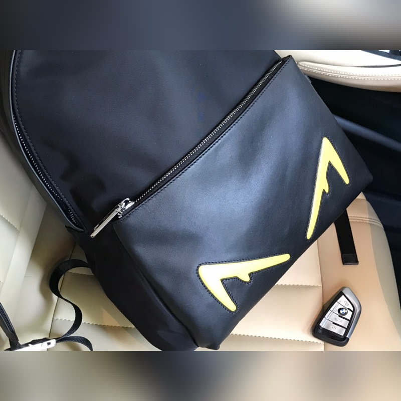 펜디 천으로 덮인 책가방 모델: 0234-1 펜디 몬스터 백팩 업그레이드 버전 나일론 인서트와 블랙 가죽 소재의 백팩 BAG BUGS 아이 패턴 지퍼가 달린 앞주머니 가죽 소재의 측면 패널과 손잡이 통기성 있는 기술적 메시 소재의 뒷면 더블 지퍼 잠금장치와 내부 주머니 출장이나 레저 활동에 필수적인 아이템 크기: 33x40x15cm