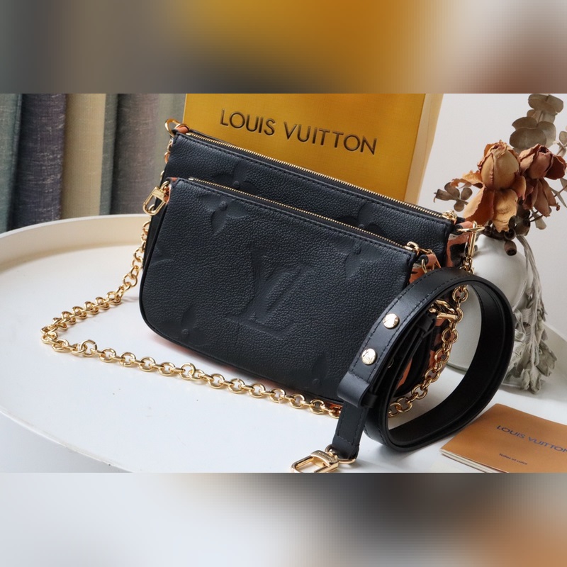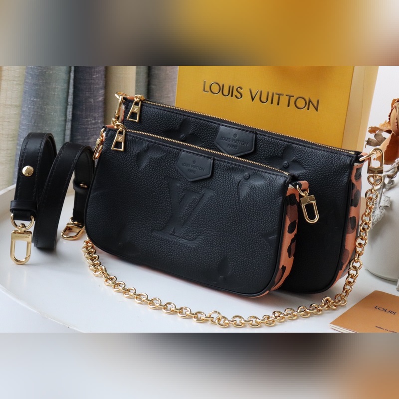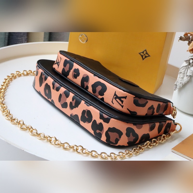 LV 모델 번호: M45777 Leopard 멀티 파쎄트 액세서리 핸드백 모노그램 캔버스로 제작된 3-in-1 다기능 디자인 여러 개의 포켓과 수납공간. 길이 조절이 가능한 골드 컬러 체인과 루이비통 모노그램 자카드 숄더 스트랩으로 크로스 바디 등 다양한 휴대 방법을 제공합니다. 크기: 24 x 13.5 x 4cm 아이템 번호: LD96181020