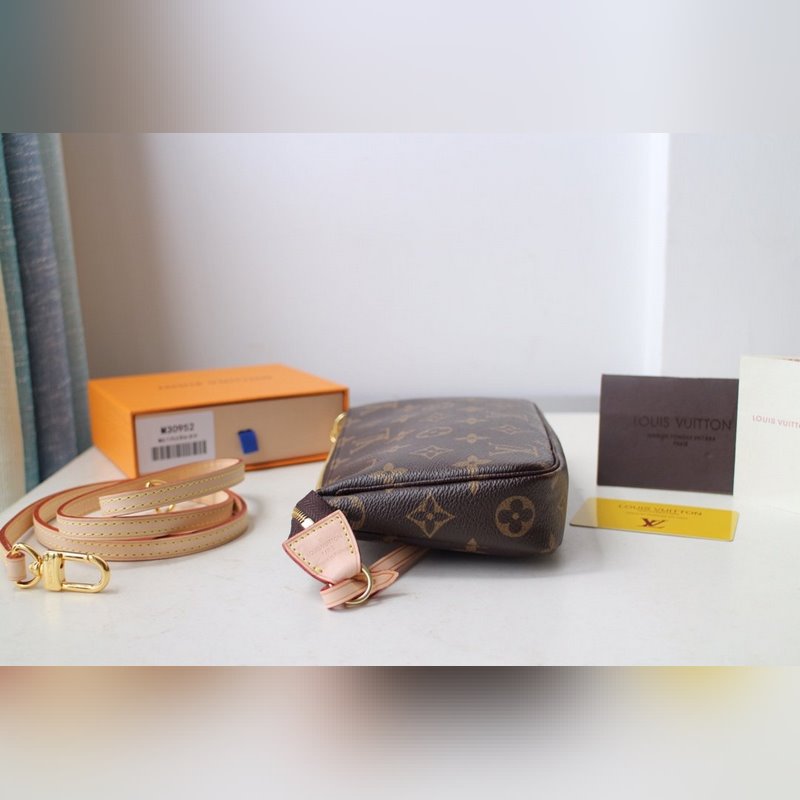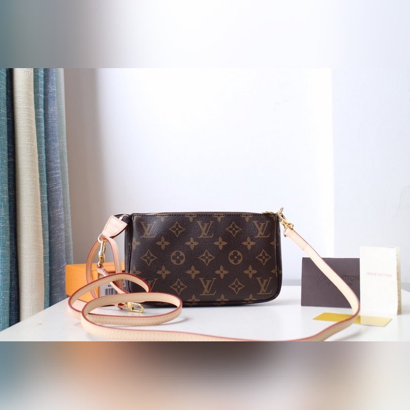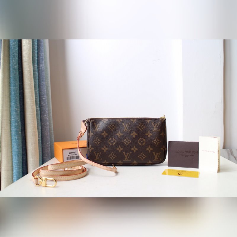 LV POCHETTE 액세서리 대형 핸드백 모델 M51980 더블 숄더 스트랩 캔버스로 만든 작고 가벼운 핸드백으로 손으로 들고 다닐 수 있고 어깨에 매는 스트랩이 있어 크로스 바디로 메고 다닐 수 있습니다. 정말 다재다능한 핸드백입니다. 크기 21x13x3cm 항목 번호: LD9618700