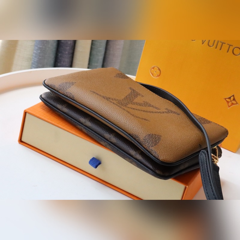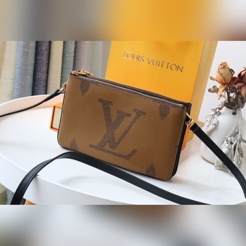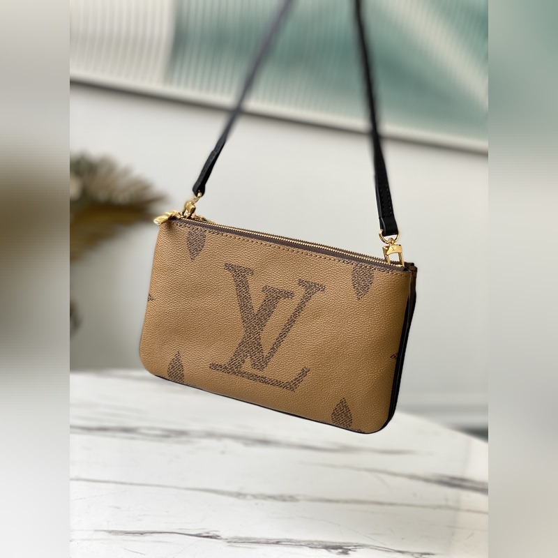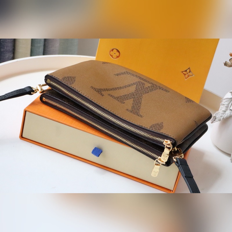 LV 모델 번호: M69203 더블 지퍼 파우치 핸드백 모노그램 캔버스와 모노그램 자이언트 리버스 캔버스의 융합으로 클래식과 트렌디의 충돌을 보여줍니다. 지퍼 포켓 중 하나에는 일상용품들을 보관할 수 있는 카드 홀더가 있고 중앙 공간은 지폐를 넣고 꺼내기 편리하며 탈부착이 가능하고 길이 조절이 가능한 가죽 어깨끈은 다양한 운반 방법을 가능하게 합니다. 크기: 20 x 12.5 x 3cm 항목 번호: SG9618900 LD9618800